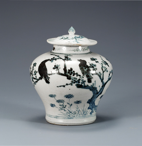 백자청화 매화새무늬 항아리 조선(朝鮮) 15~16세기 국보 170호 국립중앙박물관