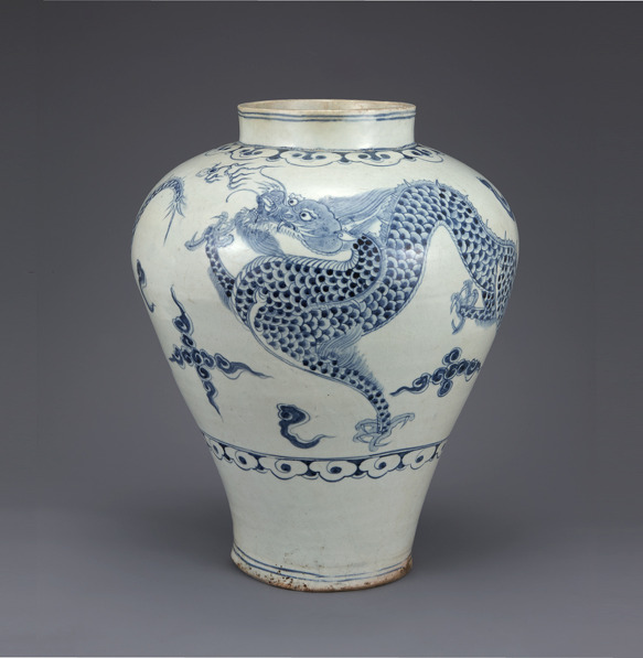 조선왕조는 유교적 이념에 따라 길례(吉禮)·가례(嘉禮)·빈례(賓禮)·군례(軍禮)·흉례(凶禮)의 오례(五禮)를 통치의 기본으로 삼았다. 이를 통해 왕실의 법식을 세우고 기물(器物)의 범례를 만들었다. 그중에서도 궁중 잔치 때 꽃이나 술을 담았던 청화백자 용무늬항아리[용준(龍樽)]는 왕실의 예(禮)를 대표하는 기물이라 할 수 있다.
