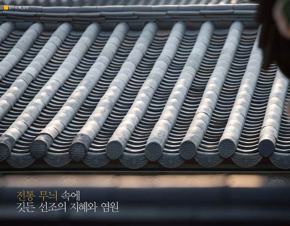 한국인은 대자연의 질서에 조화롭게 순응하면서 풍부한 상상력을 발휘해 각종 문양을 만들어 냈다. 이 문양들은 대부분 자연에서 소재를 얻은 것으로 문양 속에는 아름다운 장식미와 함께 우리 전통의 미의식이 숨 쉬고 있다. 기와에도 여러 가지 문양이 새겨져 있다. 그것은 아마도 살고 있는 곳의 가장 윗부분인 지붕에 대해 어떤 의미를 담은 것이 아닌가 싶다.