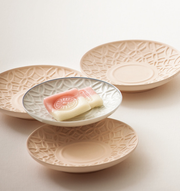 우리 선조의 미학을 엿볼 수 있는 도자기 문양과 떡살과 다식판의 아름다움이 깃든 절편과 다식으로 장식했