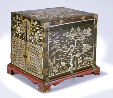 ‘나전칠기 가께수리’(조선 시대, 국립중앙박물관 소장) 나전을 이용해 윗면에는 복숭아와 한 쌍의 새를, 정면에는 귀갑(龜甲)과 매화를, 오른쪽 측면에는 산을 배경으로 소나무·학·사슴을, 왼쪽 측면에는 죽순을 비롯한 여러 대나무, 매화, 새 문양등을 마치 여러 폭의 회화처럼 표현했다.