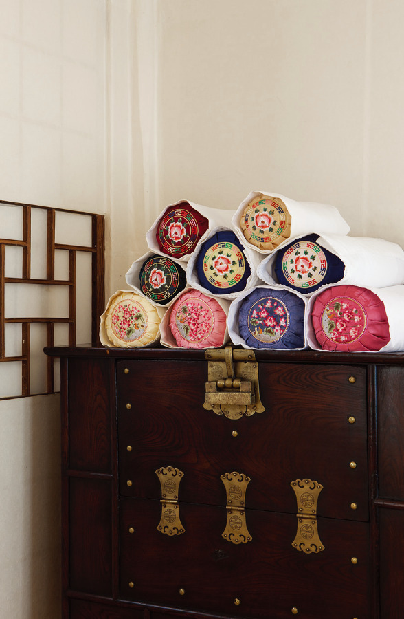 전통 기법으로 만든 금침이나 보자기에 수놓은 예스러운 문양….