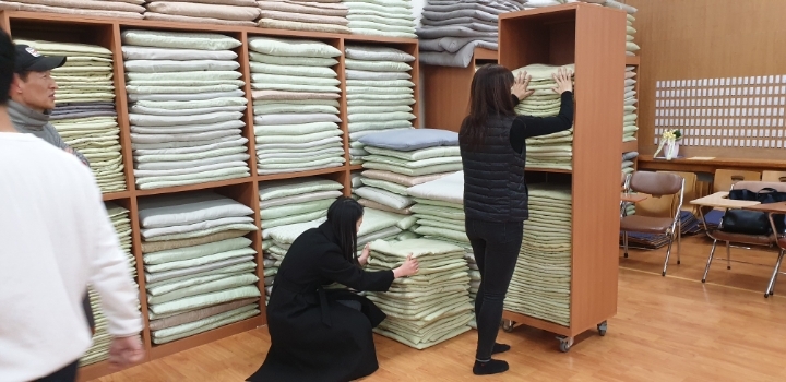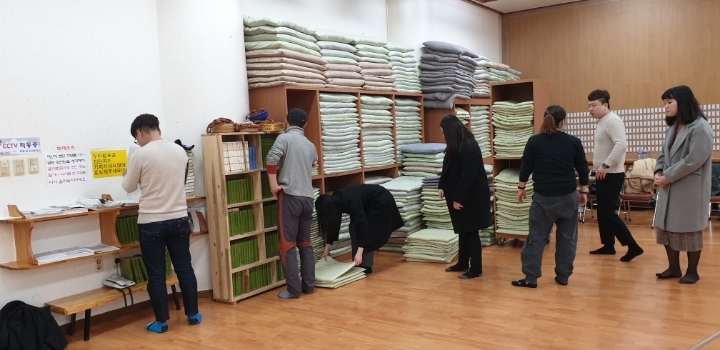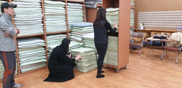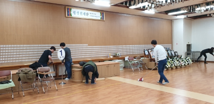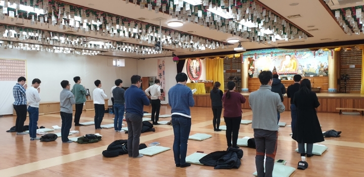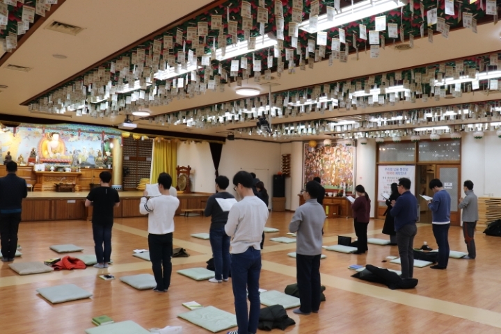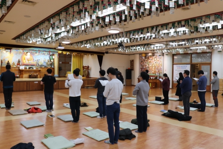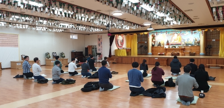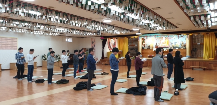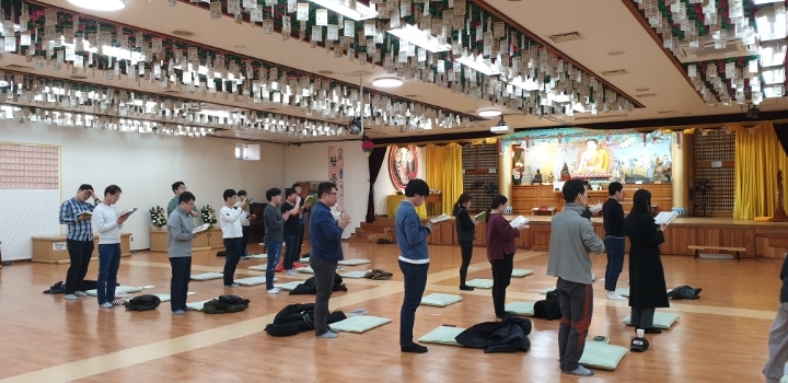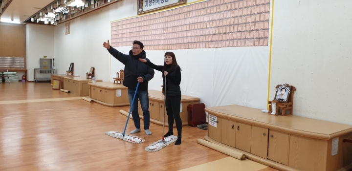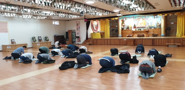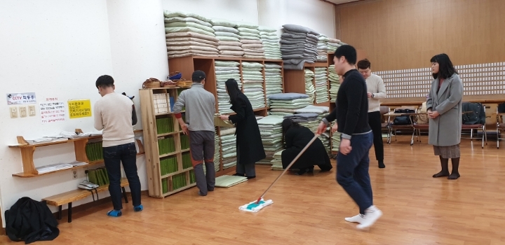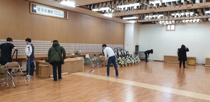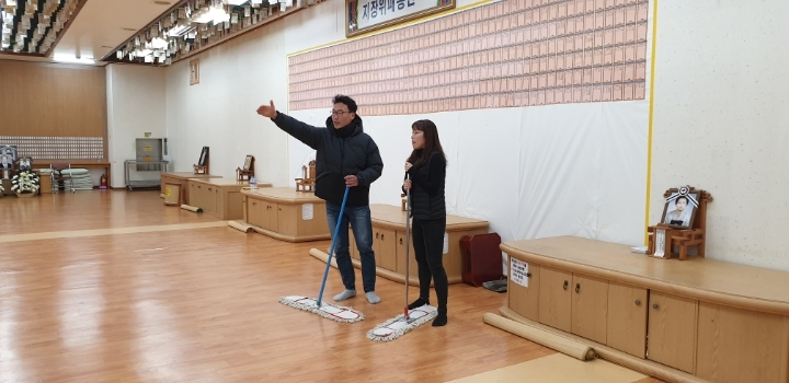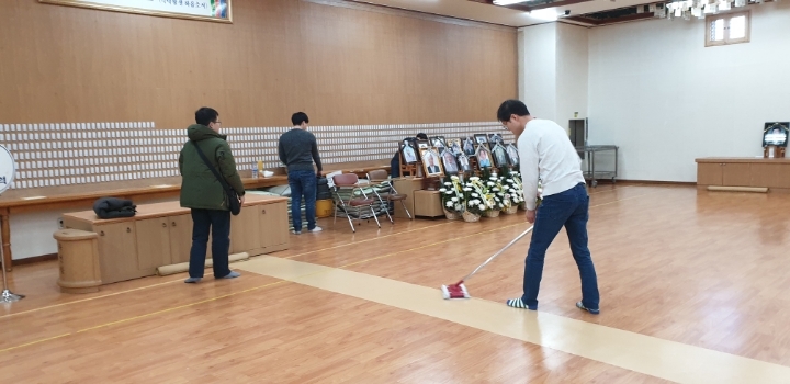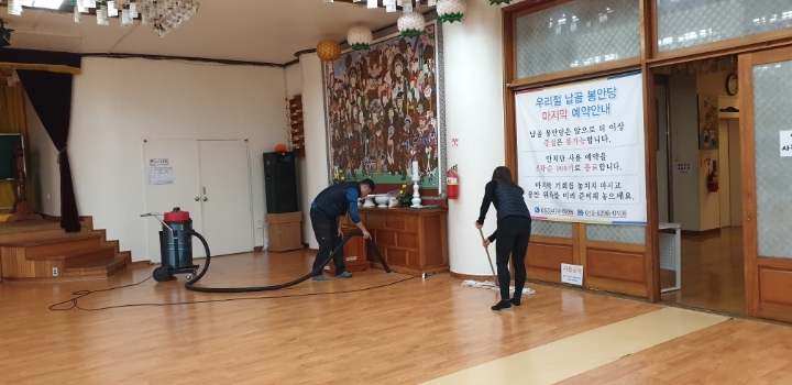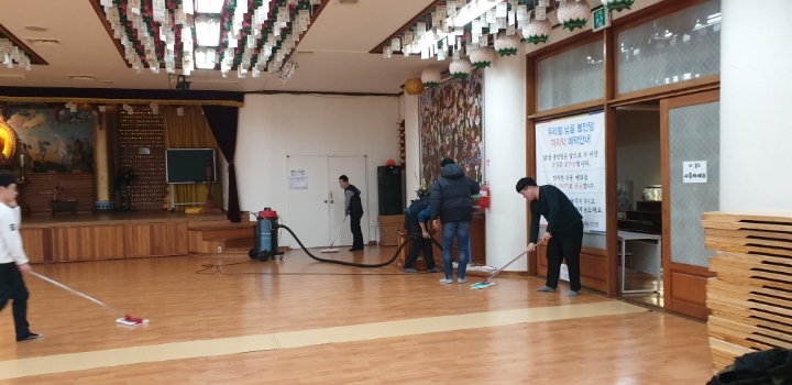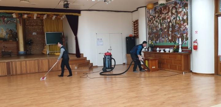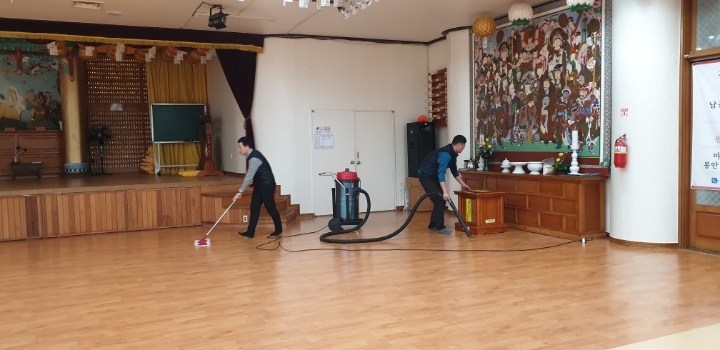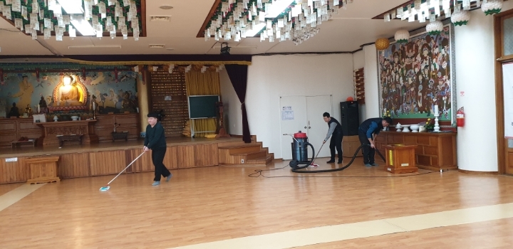 매주 법회를 하는 대웅전 3층 대청소를 하고