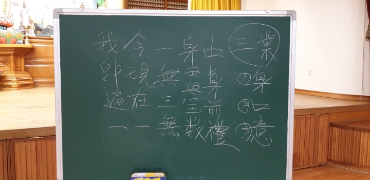 아금일신중 즉현무진신 변재삼보전 일일무수례