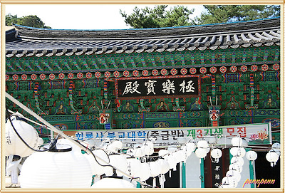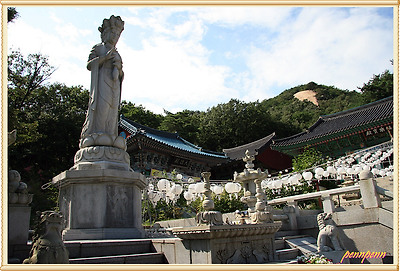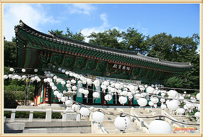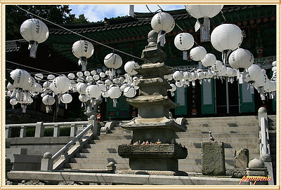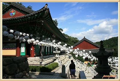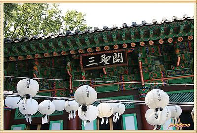마당에는 아직까지 흰색의 연등이 달려 있어 사찰의 분위기를 고조시킨다.