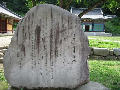 한용운이 나룻배와 행인이라는 시를 자연석에 새겨 놓았다.