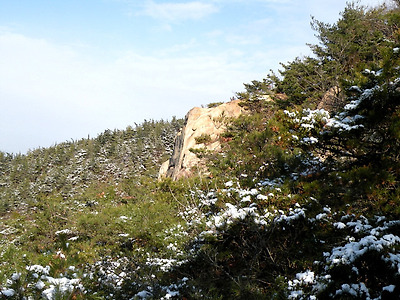 바위가 비스듬히 높게 솟아 있어 하늘과의 연결을 암시하고 있다.