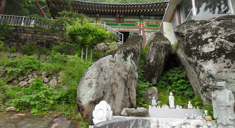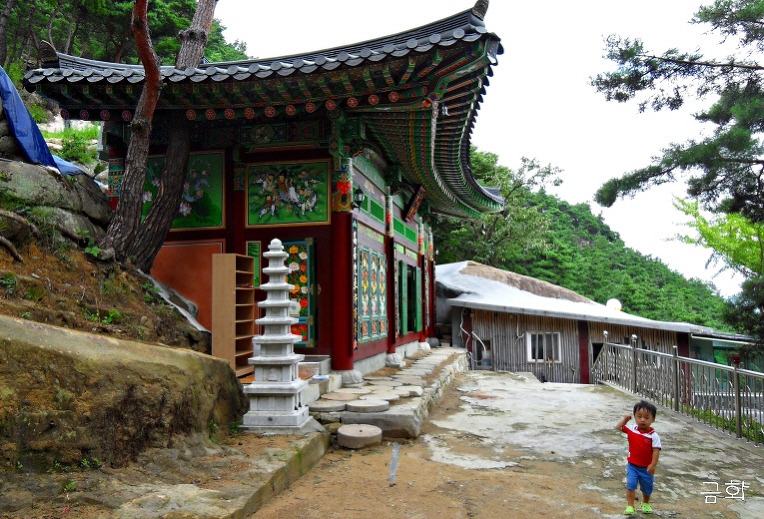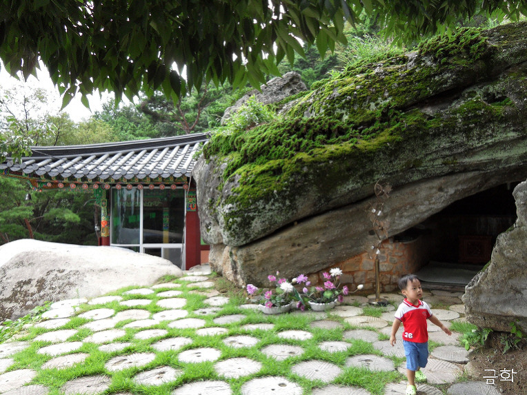 대자보전옆 석굴법당 을 지나가는 우리 지나
