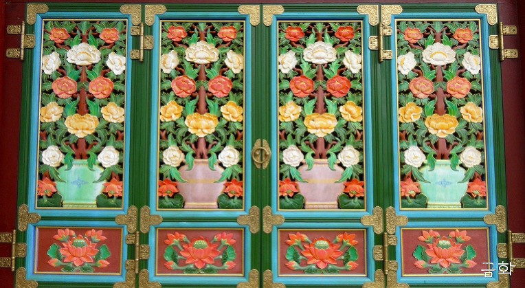 대자보전 정면 창호 供花
