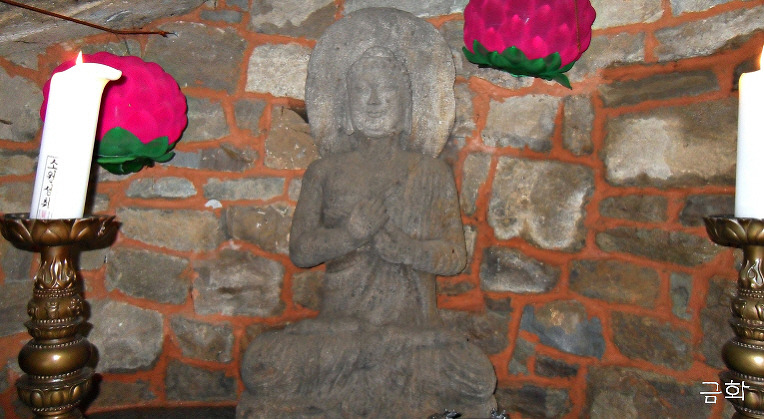 석굴법당에 봉안된 석불조상 ! 미타여래?