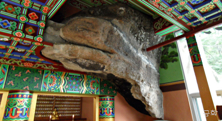 법당내부는 거대한 자연석 자체가 용의 형상으로, 부리부리한 두눈으로