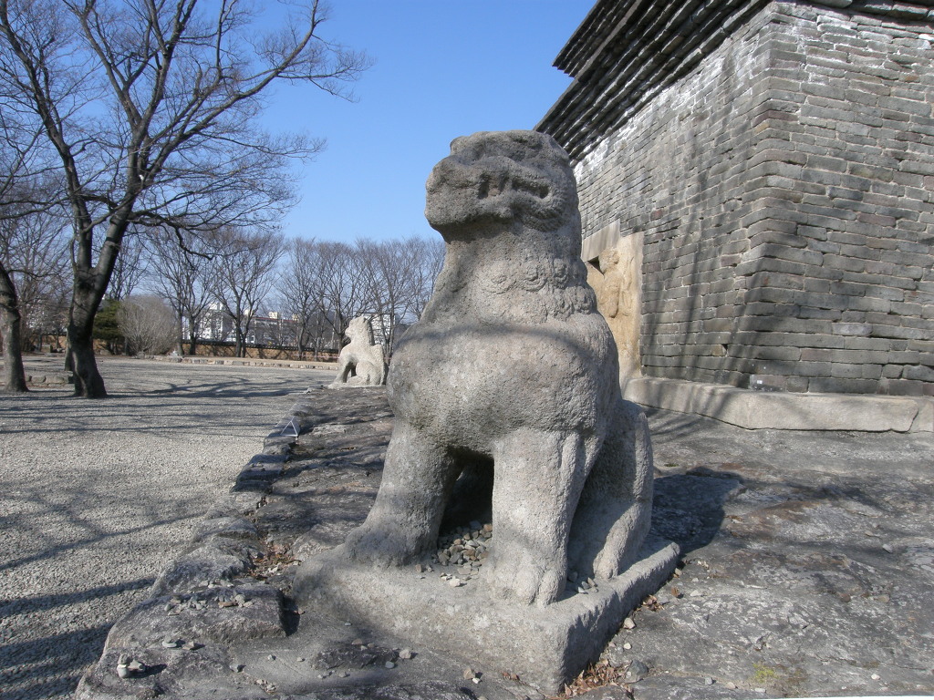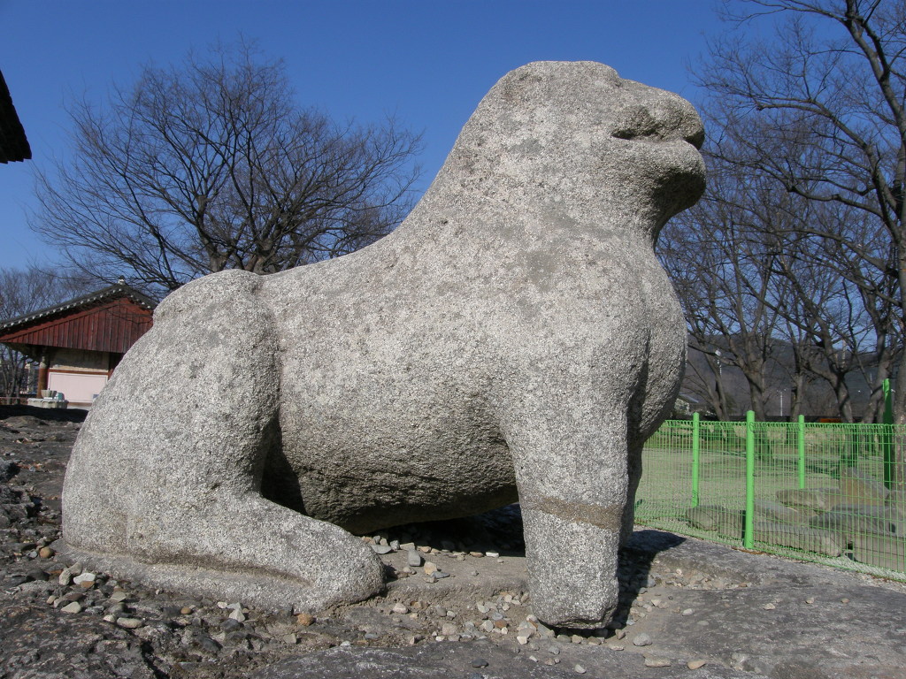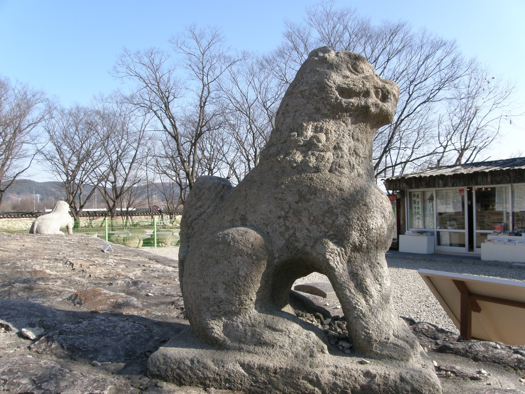 - 동남쪽 사자상은 앞발이 닳아 공중에 들려있는 상태입니다.