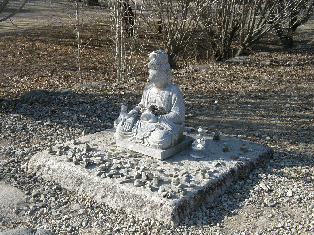 - 겨울 저녁 햇빛이, 깊은 사유에 잠긴 돌부처님에게 그늘을 드리우는군요. 누가 붙인 동전인지, 빛을 발하고 있네요.