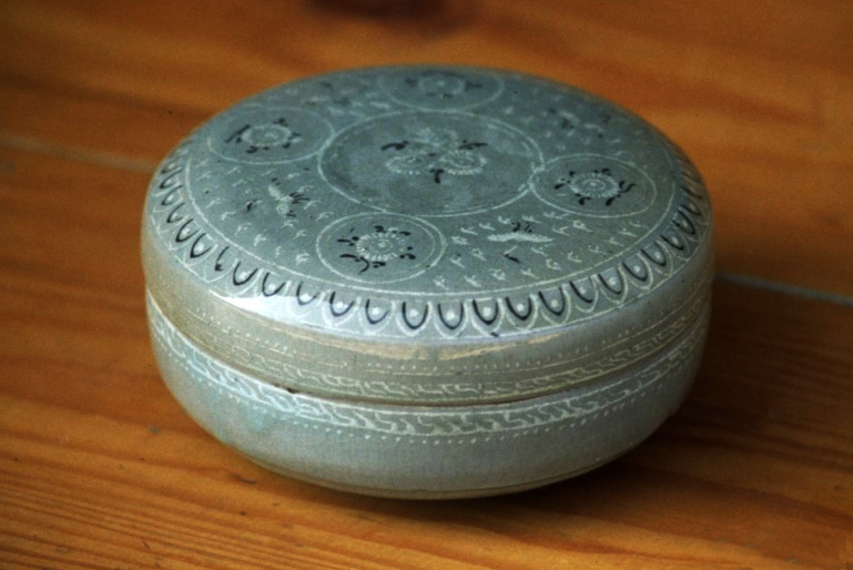 몸체는 중앙에 위 아래가 구분되는 꺾이는 면이 있으며, 입술에는 드림새를 두어 뚜껑과 맞도록 하였다. 뚜껑과 몸체는 검은 모래가 섞인 내화토를 빚어서 서로의 입술에 받치고 구워 처음부터 함께 만들었음을 알 수 있다. 몸체의 굽과 굽 안바닥에 규석을 받쳐 갑발 속에 넣고 정성스럽게 구운 듯하다. 유약은 탁한 청자색으로 빙열이 약간 보이지만 비교적 얇게 시유된 듯하다.