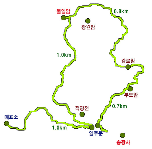불일암의 참배시간은 오전 8시부터 오후 4시까지이므로 시간을 맞추어야 참견할 수 있다