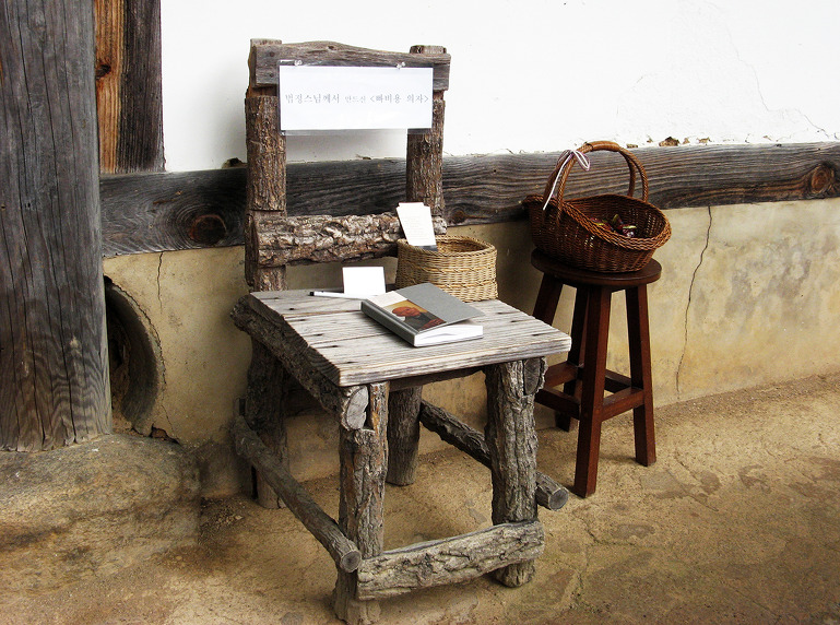 이 의자는 법졍스님이 직접 참나무 장작을 다듬어 만드셨다고 한다.
