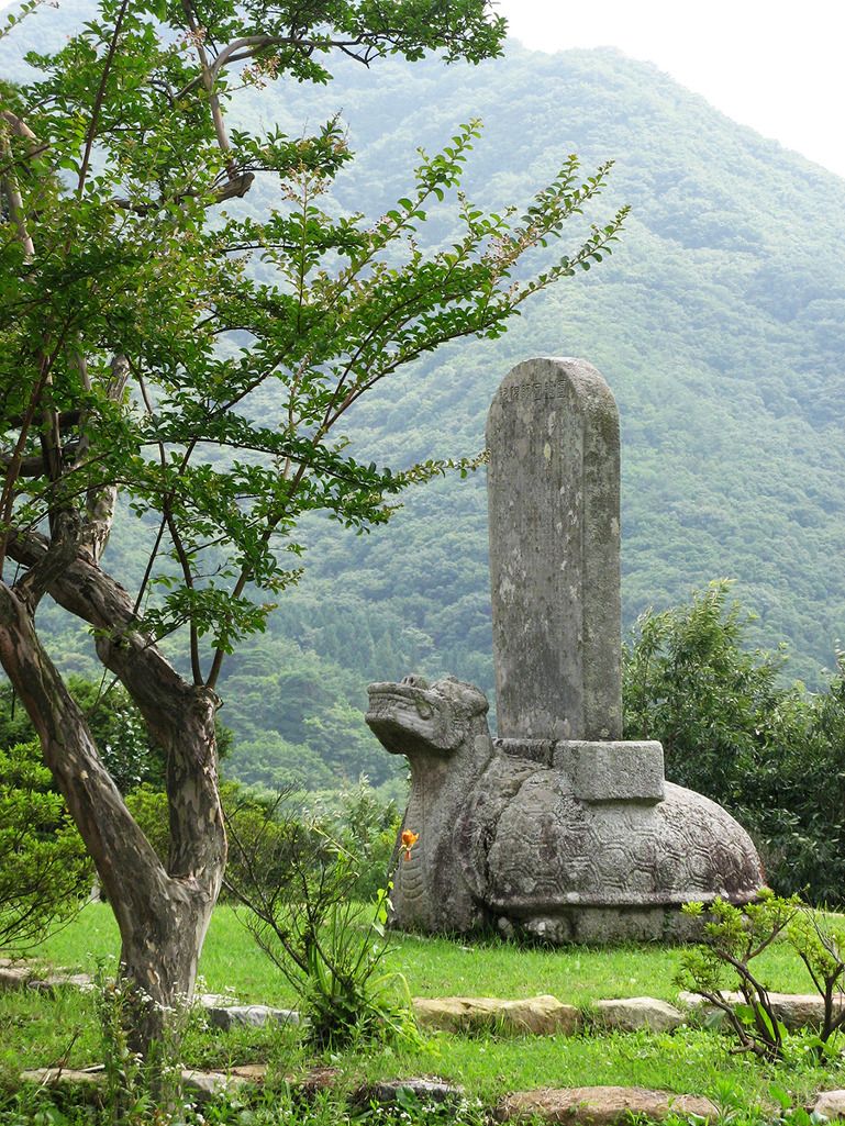 등에는 이수가 없는 비석을 세웠다. 조형미는 다소 떨어지지만 비가 서있는 곳은 아래로 내려다보이는 풍경과 산들이 막아서는 경치가 좋다.