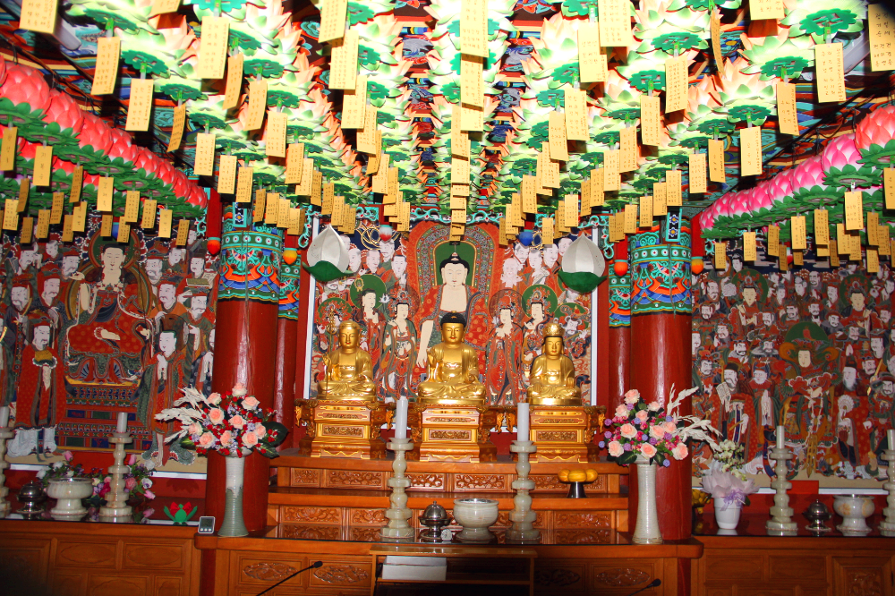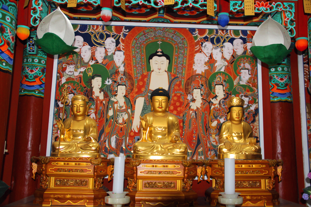 중앙에 주불인 아미타불, 좌우 협시불로는 지장보살과 관세음보살을 모셨다.