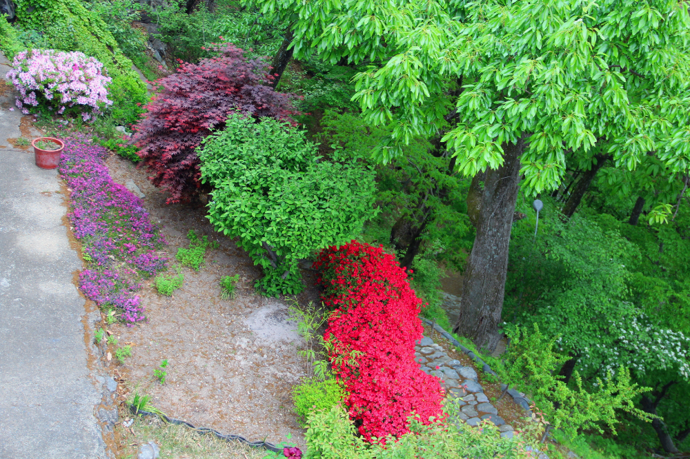 물론 사람의 힘으로 가꾼 것들인데 물싸리, 안개나무, 자단, 석류나무, 철쭉 등다른 암자에서는 볼 수 없는 꽃을 피우는 나무들과 산에서 자생하는 말채나무와 기타