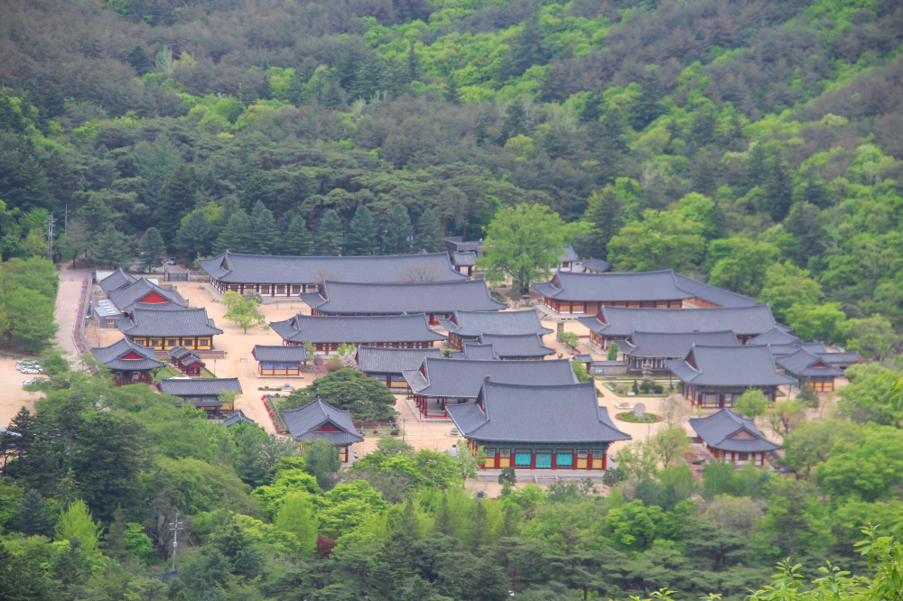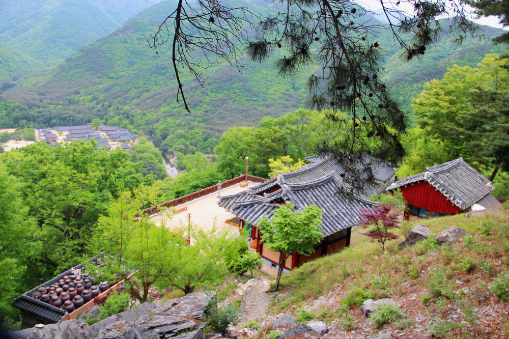 북대암 마당에서 내려본 운문사... 안구가 정화되는 듯 시원한 전경이 펼쳐진다.