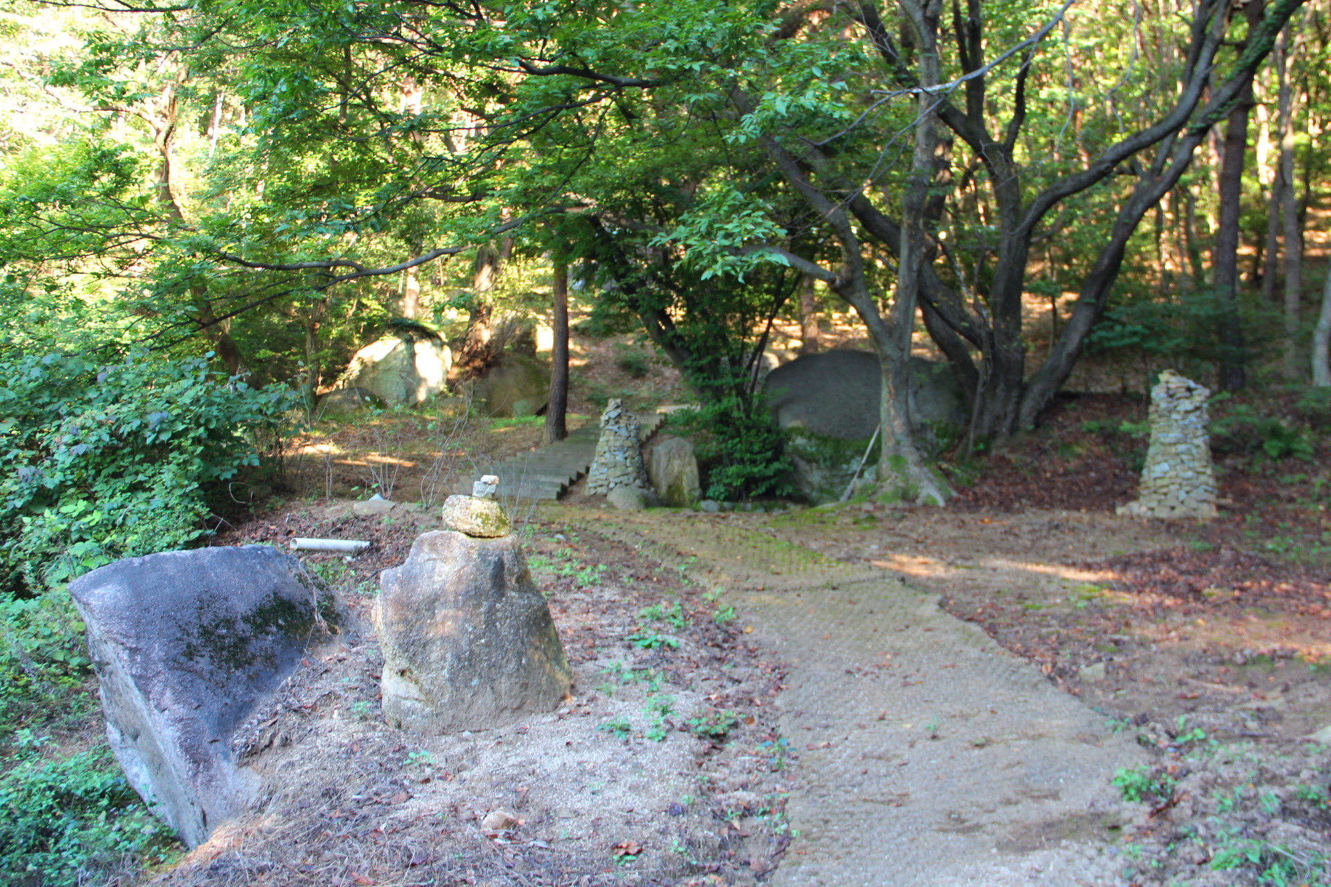 스테파노는 대웅전 삼존불 부처님께 삼배를 올리고 산길을 따라 올라가면서 알밤도