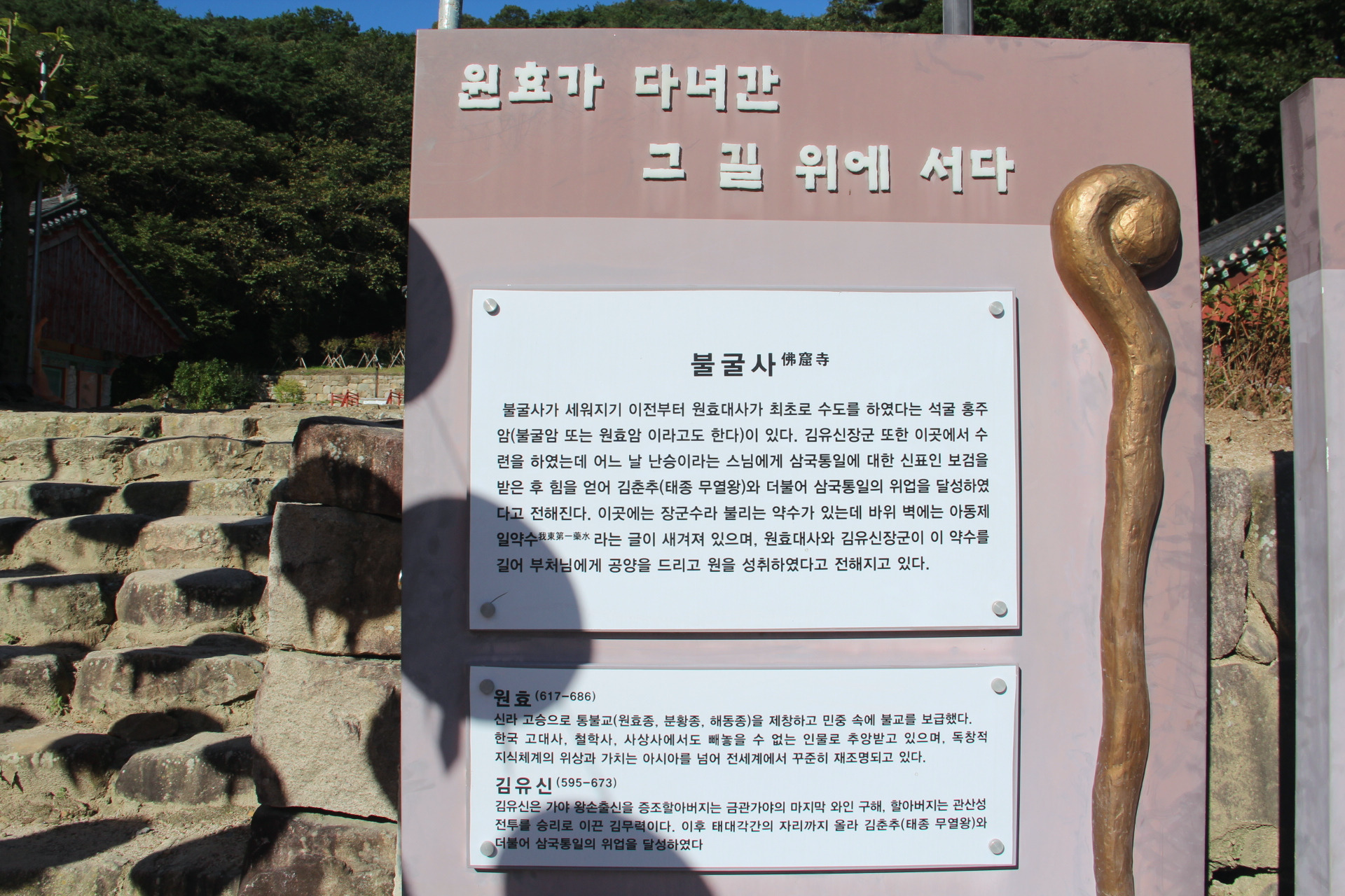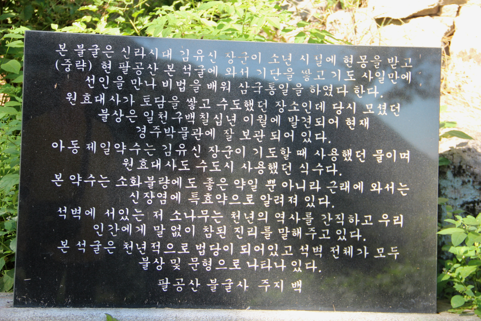원효대사께서 이곳에 머물며 수도를 하여 원효굴로도 불리는데 이곳은 김유신이 17세 때 삼국통일