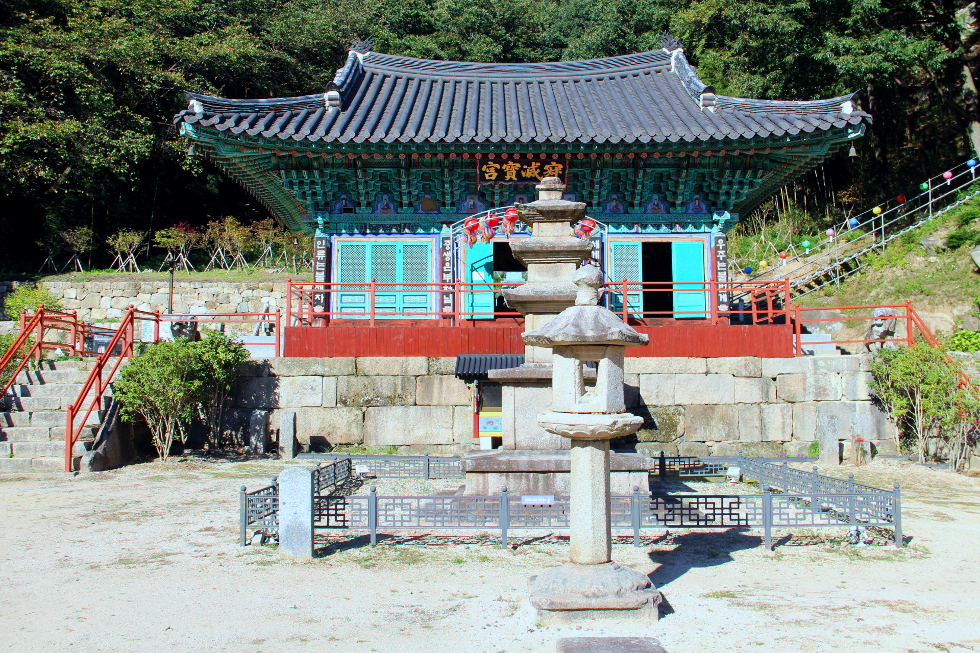 주불전인 적멸보궁(寂滅寶宮)에는 불상이 없고, 1988년 인도에서 가져온 진신사리를 봉안한 석탑이
