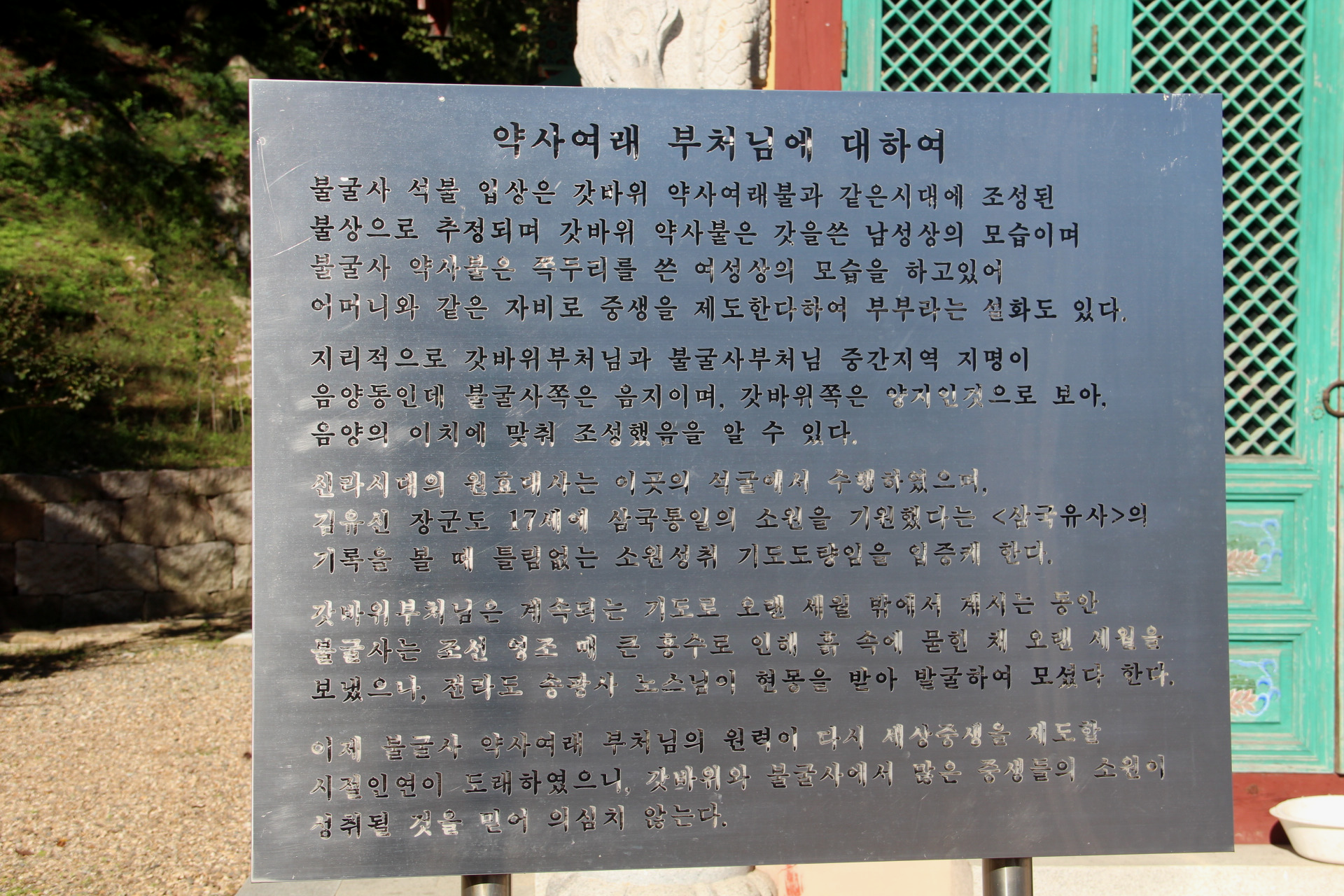 석조여래좌상) 약사여래 부처님과 비슷한 영험과 신통력이 있다는 불교의 성지이다.