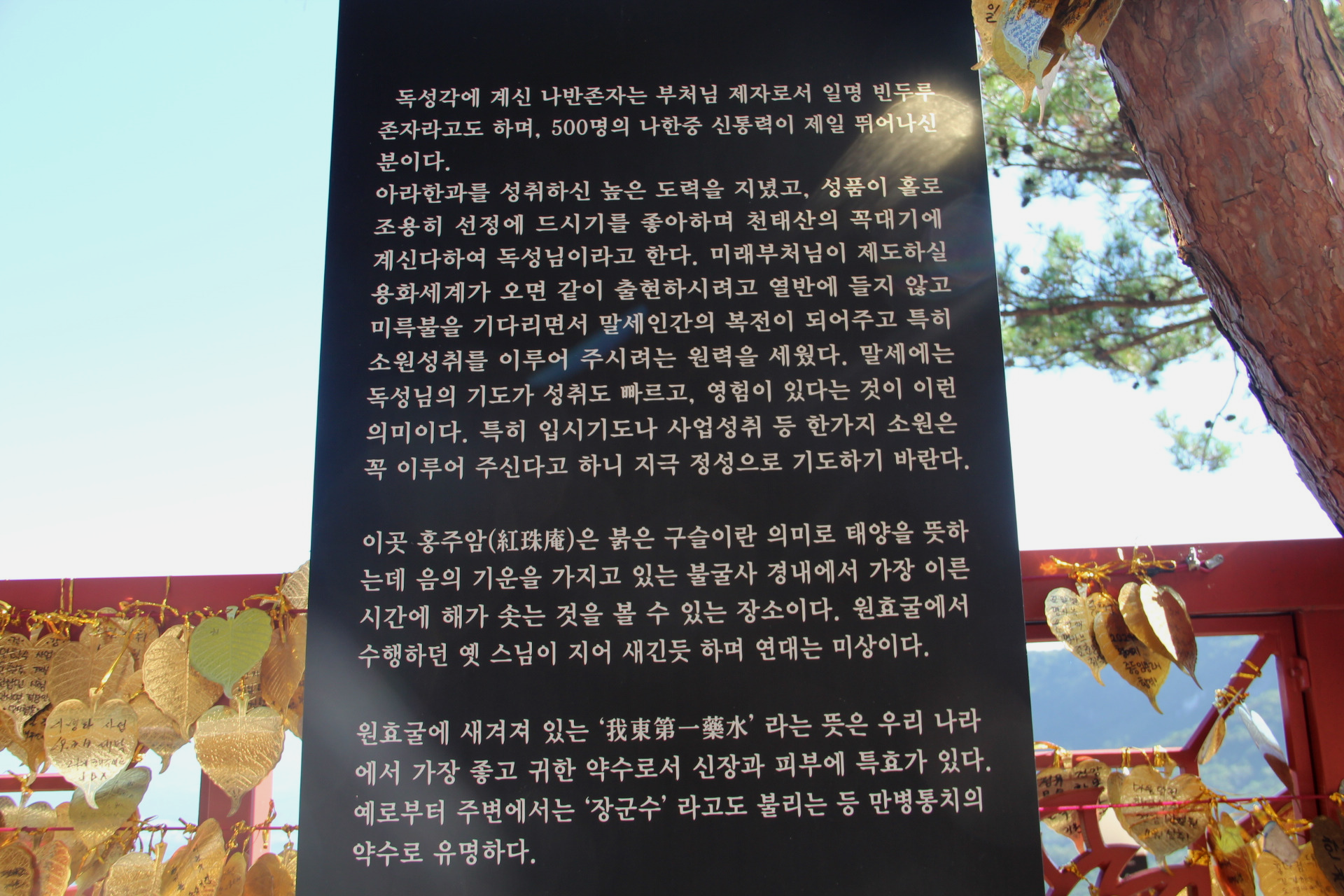홍주암 독성각(獨聖閣)에 모신 나반존자는 500명의 나한 중 제일 뛰어난 부처님의 제자이다. 열반에