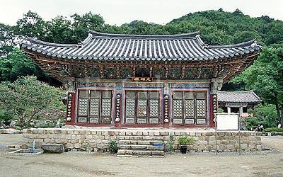 | ↑ 오어사 대웅전 / 경북 포항시 오천읍 항사리. 경북문화재자료 제88호. 정면 3칸, 측면 2칸의 팔작지붕 다포집으로 영조 17년(1741)에 중건하였다. |