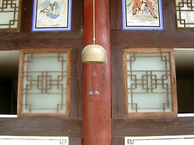 암자 측면에 요상한 물건이 매달려 있다. 풍경은 아니고 그렇다고 요강은 더더욱 아닐테고 ... 창 너머를 슬쩍 들여다보고서야 짐작 할 수 있었다. 윤필암 대중들에게 공양시간을 알리는 종(?)으로 보였다. 다른 절집은 대형 목탁으로 공양시간을 알린다.