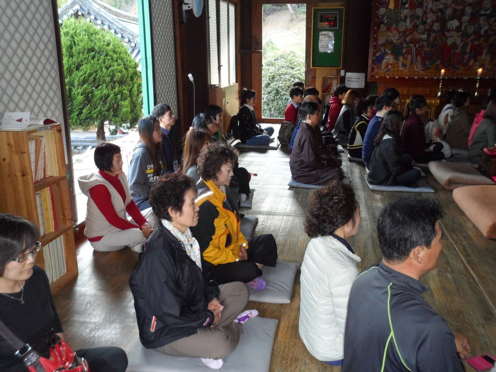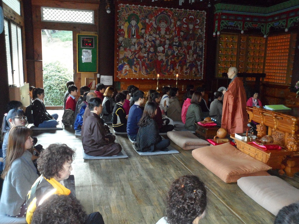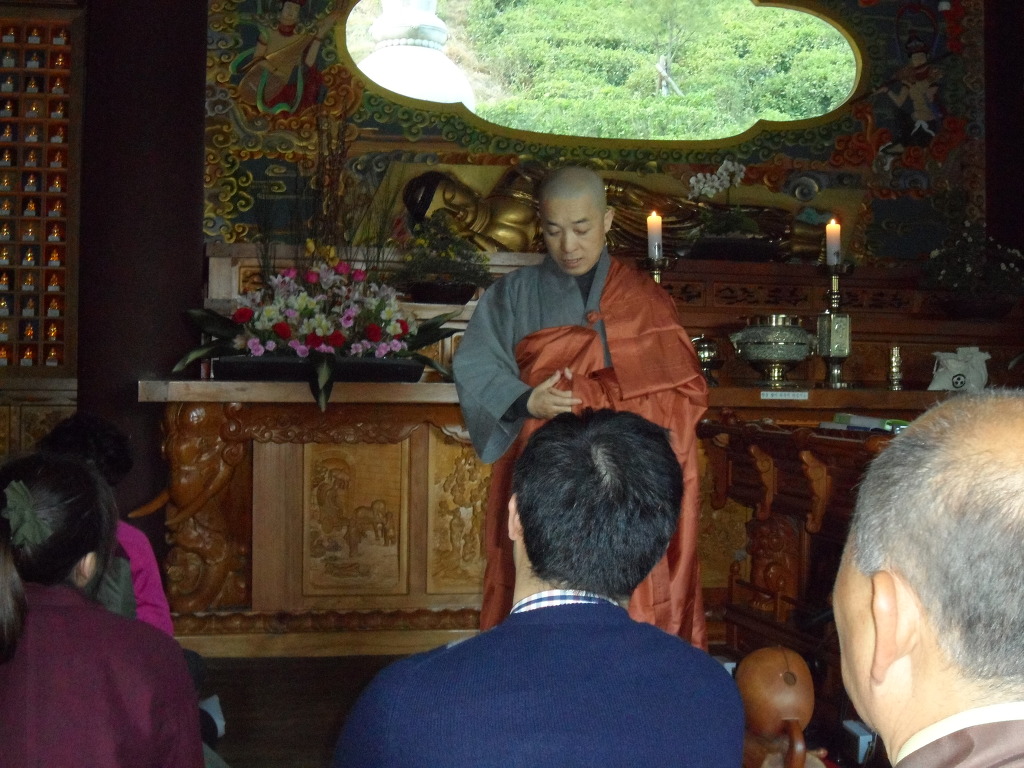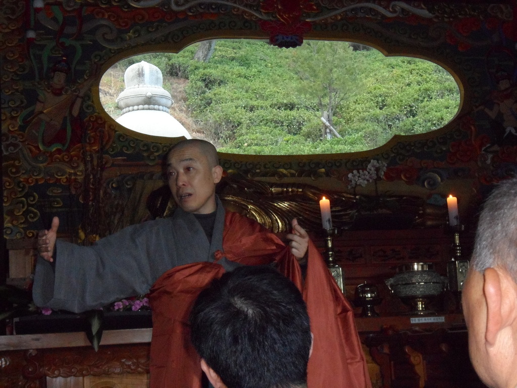 입정 시 손 모양, 마음가짐 등등에 대해서 설 해주시는 대륜 스님~ 멋지세요~!!스님 뒤로 보이는 창이 이 적멸보궁의 볼거리예요~