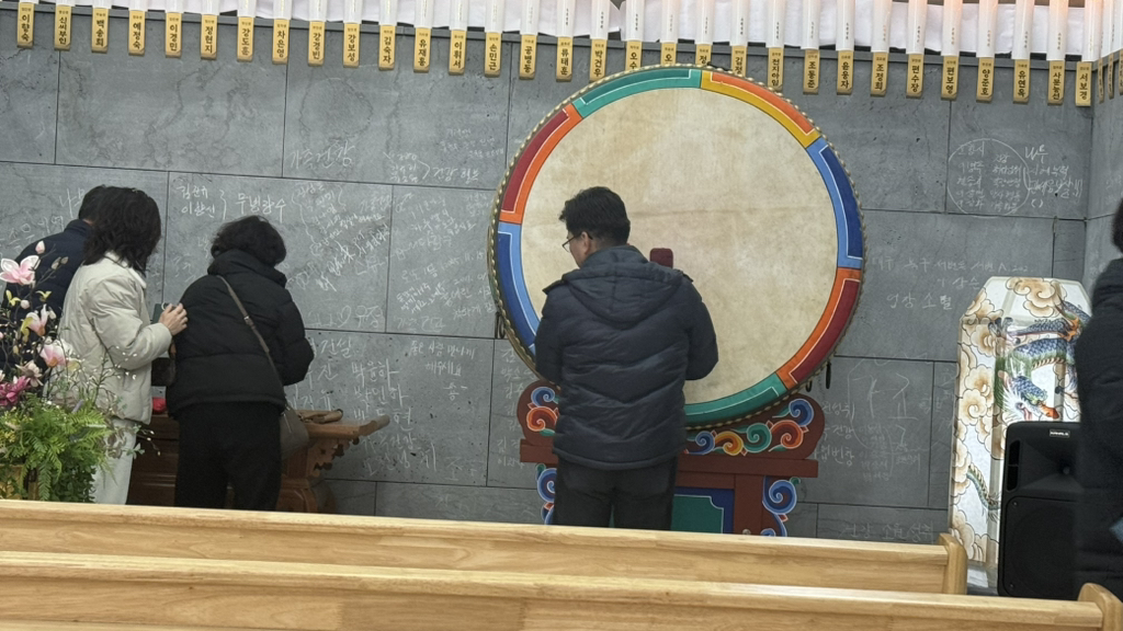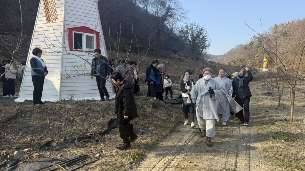 동굴법당 지나서 북도 치고,