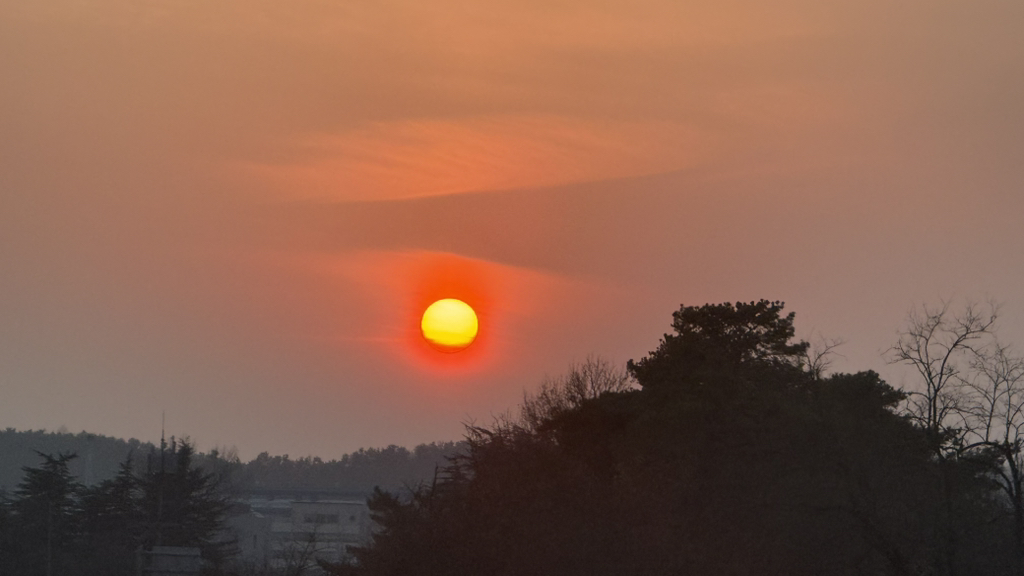 돌아오는 길에 찍은 석양입니다. 유난히 빨갛고 동그랗게 보여서 열심히 찍었습니다만