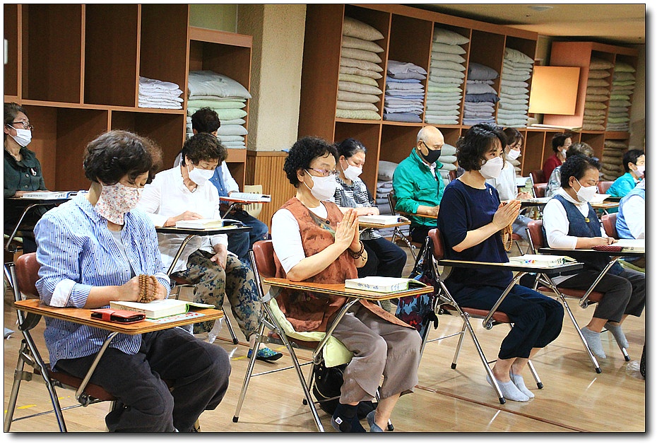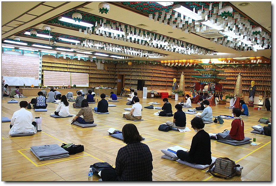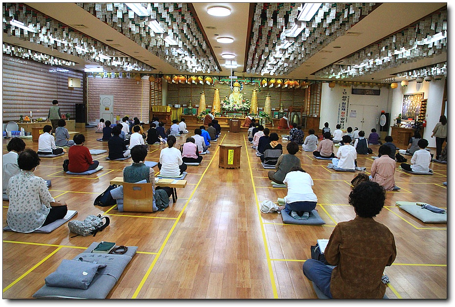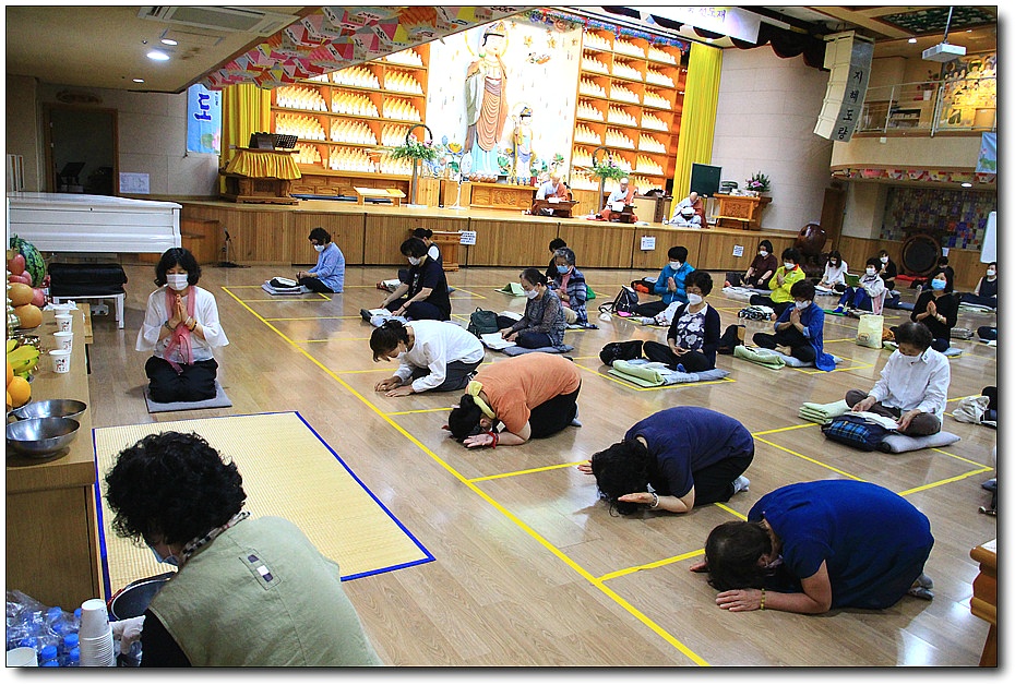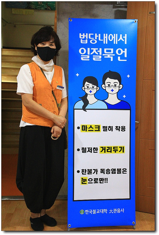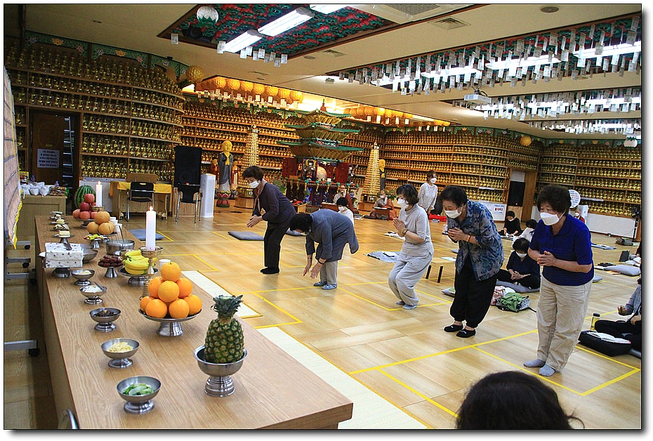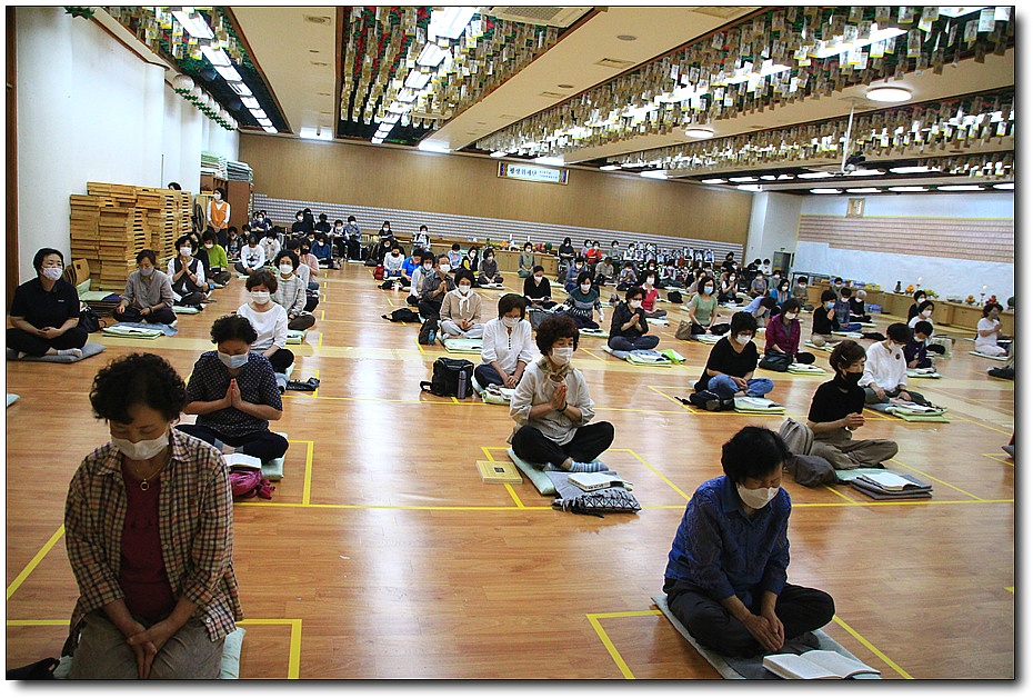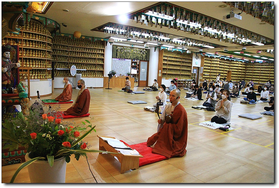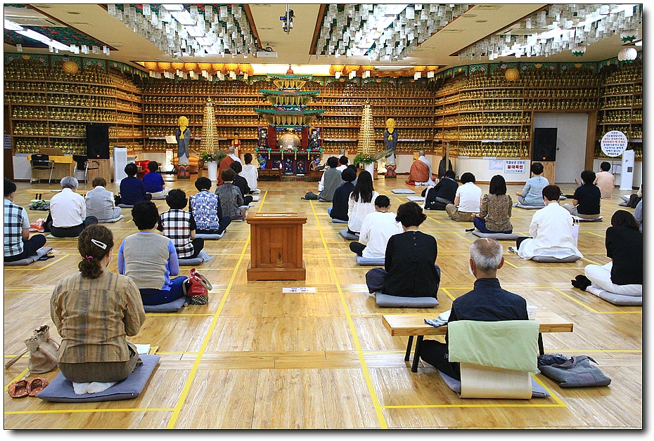 손소독, 방명록 작성, 법당에서의 거리두기 등 철저한 방역시스템 아래
