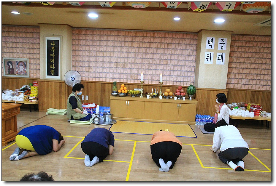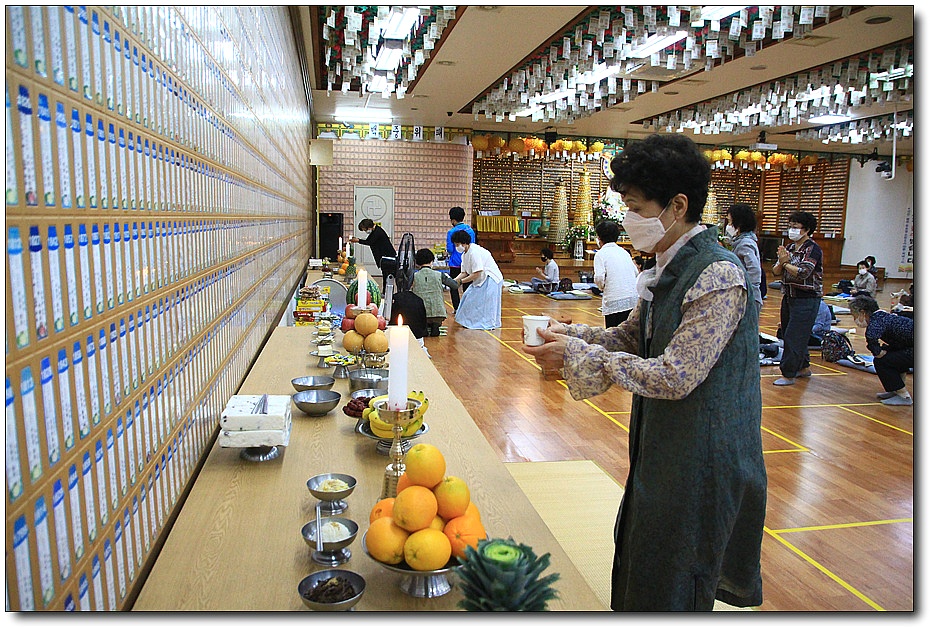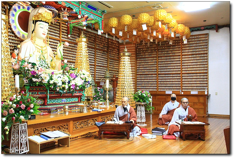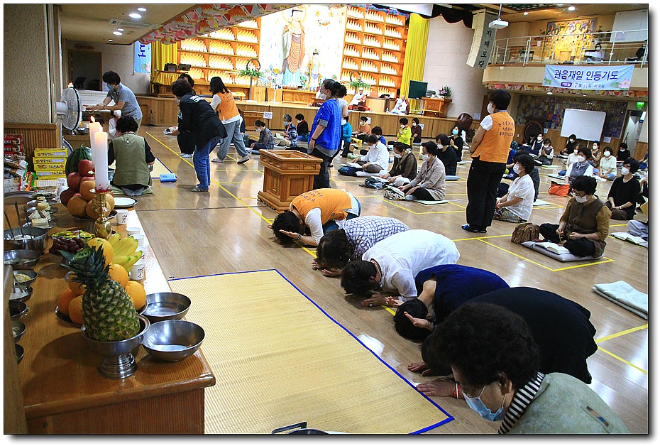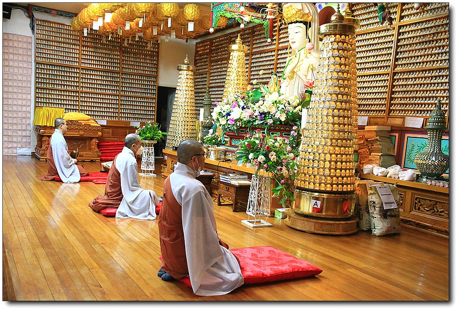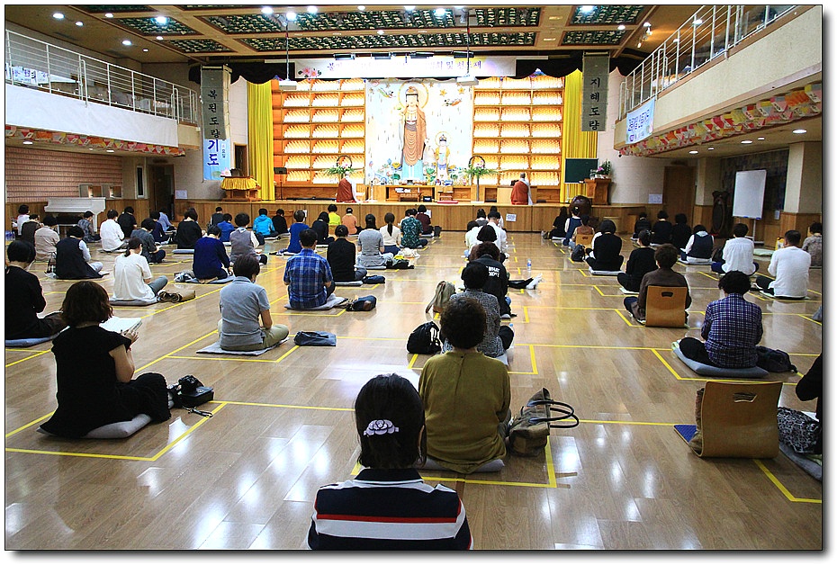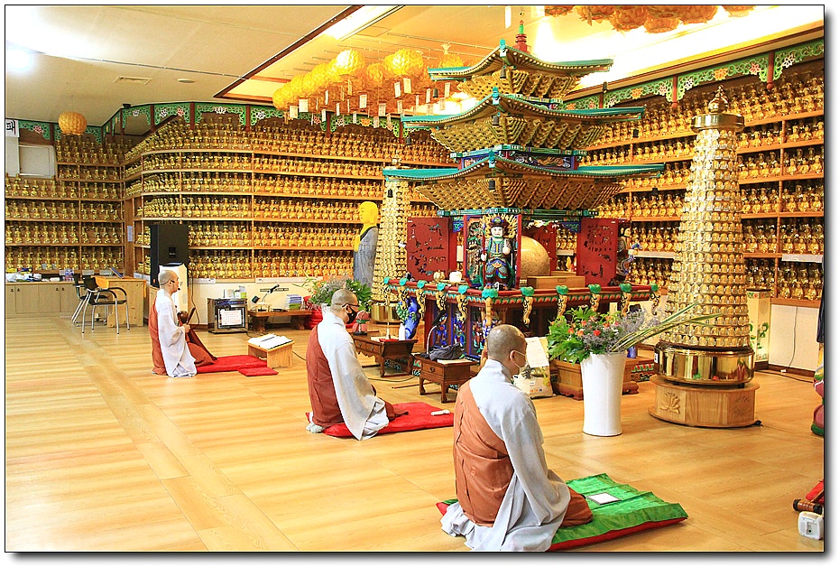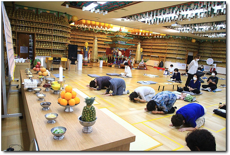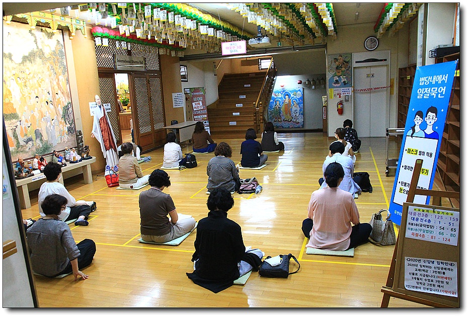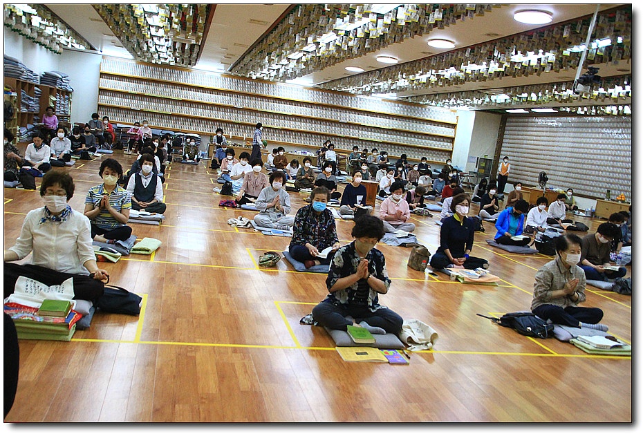 손소독, 방명록 작성, 법당에서의 거리두기 등 철저한 방역시스템 아래