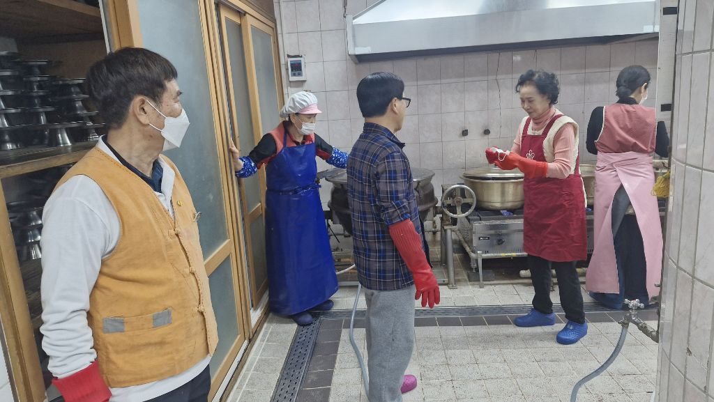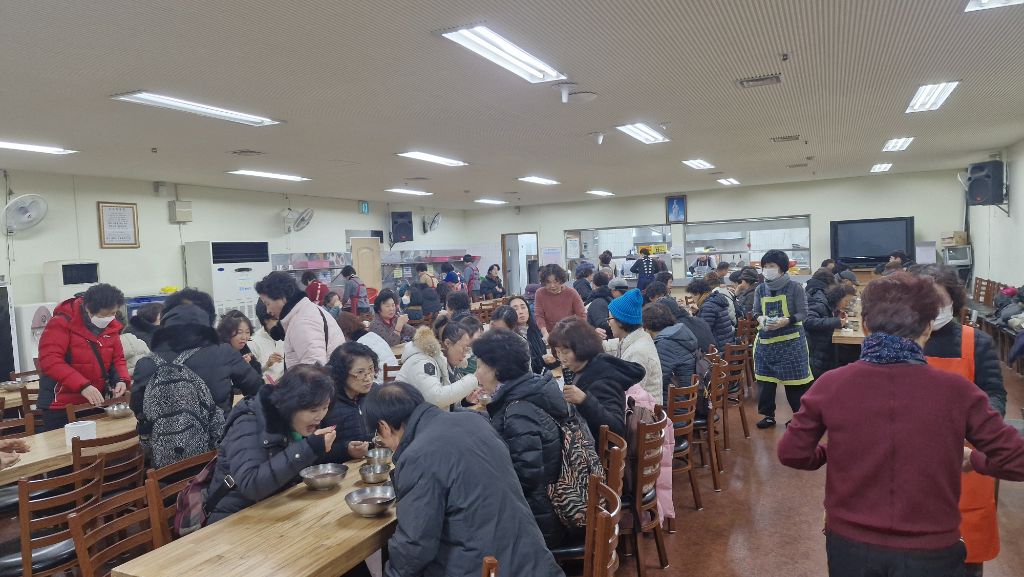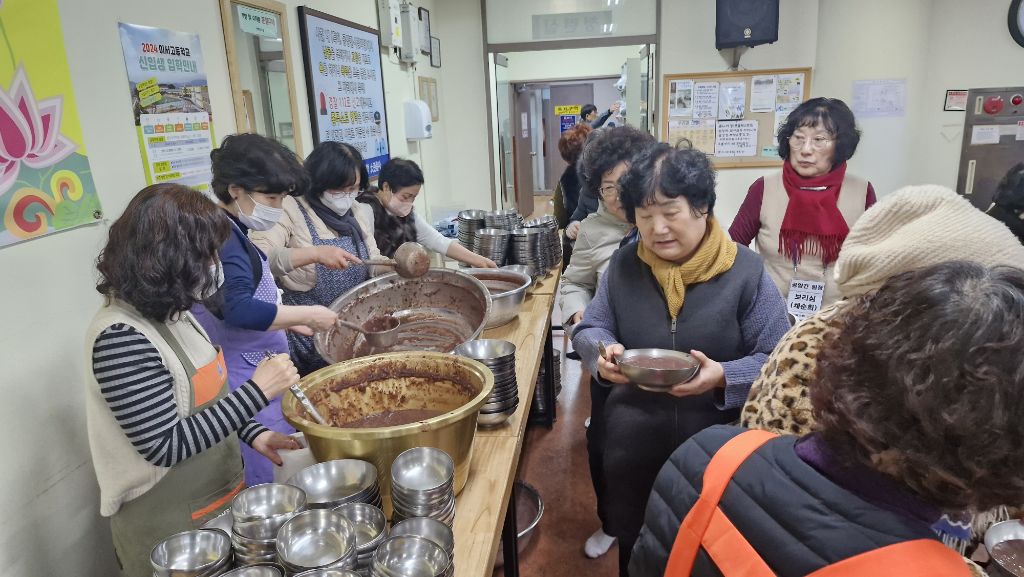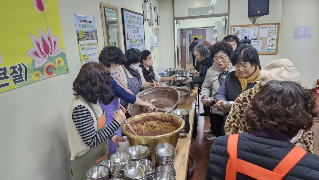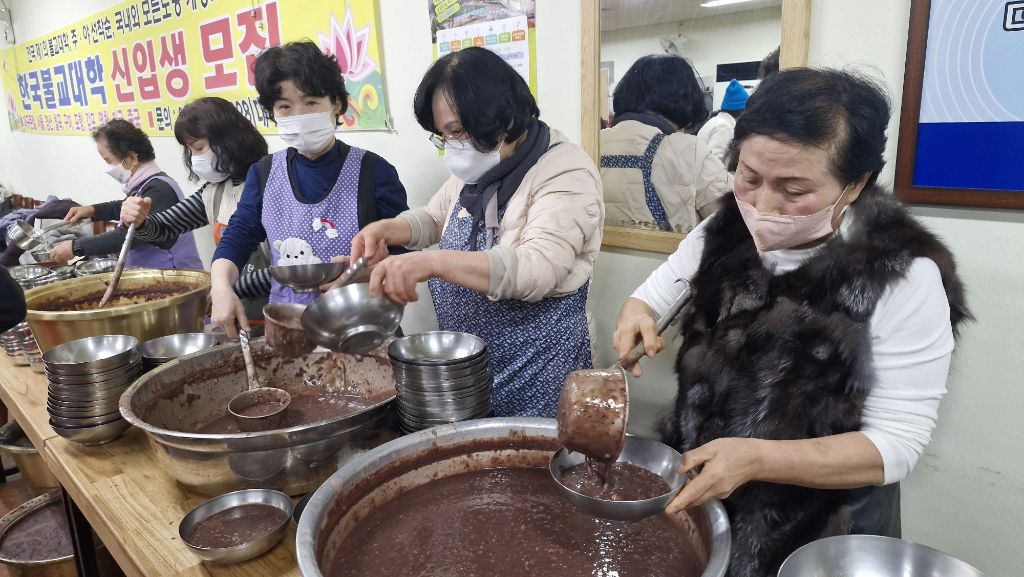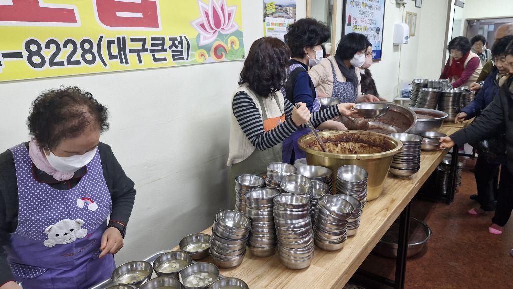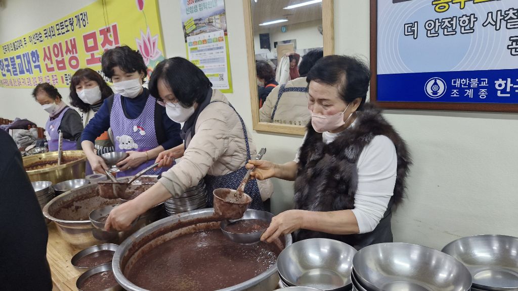 며칠전부터 준비하여 새벽부터 끓인 팥죽을 배식하고 계셨습니다.