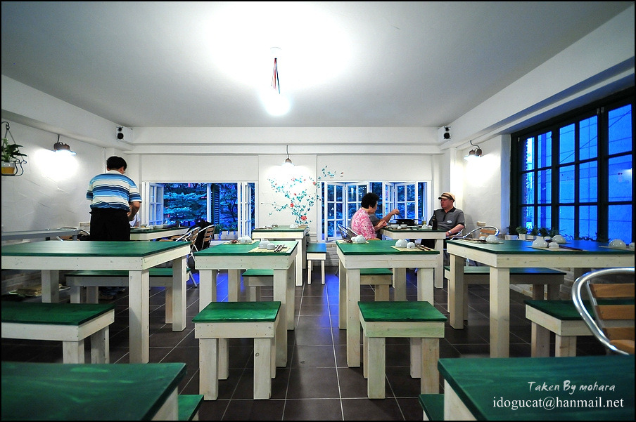 얼마되지 않은 곱창집 테이블에 불판이 없는 걸 보니 구워 먹는 시스템이 아닌가 봅니다. 주방을 힐끗 보니 꽤 정갈한 모습이고 내부 분위기는 산뜻하니 좋더군요.