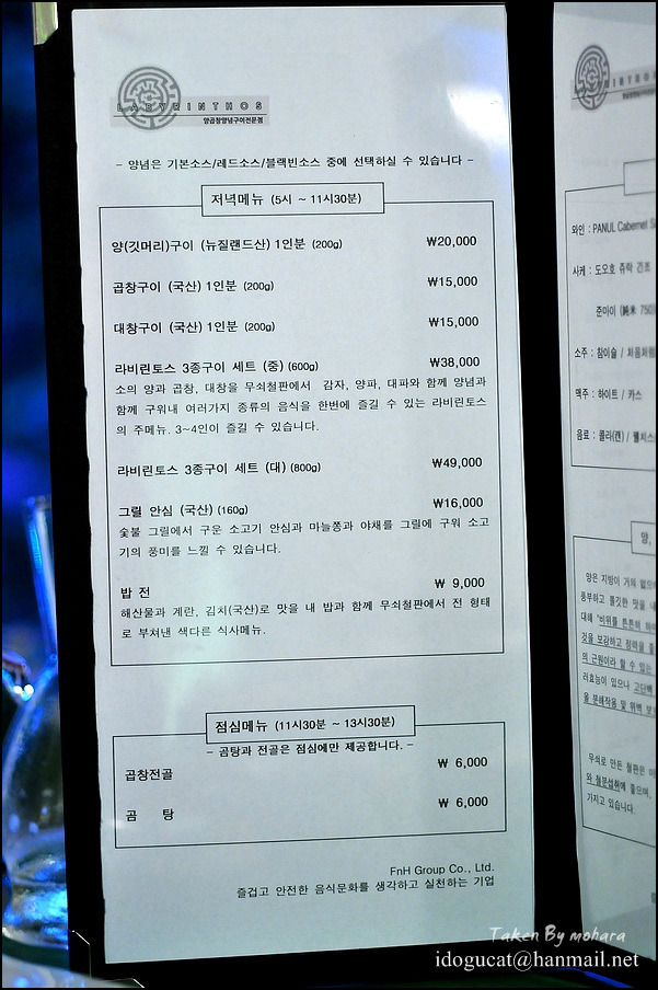 홍대엔 곱창집이 없다~라는 생각으로 홍대 근처에선 감히 곱창집을 생각지도 않았던 제게 새로운 곱창집이 생겼다는 즐거운 소식을 가지고 방문 한 곳은 '라비린토스(Labyrinthos)'라는 특이한 상호를 지닌 전혀 곱창집 스럽지 않은 그리스풍 인테리어의 식당이었습니다. 비교적 영어와 친한 생활을 한다고 여겨 왔기에 다행스럽게도 Labyrinth(래비린쓰: 미궁.미로)란 단어를 알았고 지인들 틈에서 아는 척(?)까지는 했지만 그 집을 다녀온 이후에도 쥔장님이 왜 그 상호를 썼는지는 물어보지 못했네요. 허나 가격 적당하고 질 좋은 맛난 곱창에 소스 까지 다양해 선택의 폭도 적지 ?았다며 뿌듯하게 방문을 마친 즐거운 하루였죠~