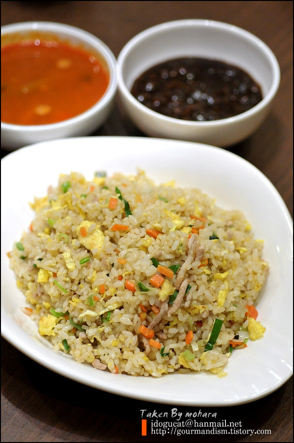 볶음밥은 고슬고슬하게 잘 볶이고 기름기도 느껴지지 않고 담백함까지 좋습니다. 그리고 짬뽕국물과 자장이 나와 같이 드시면 되겠구요.