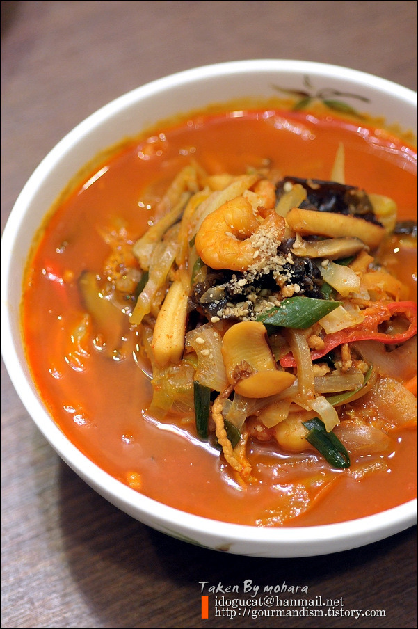 겉 보기에는 해미 영성각의 짬뽕과 같아 보이나 올라가는 고명이 같은 양념으로 조리된 듯 같은 색을 띠고 있습니다. 허나 본점에서는 따로 다른 양념으로 조리되어 색도 다르고 좀 신선한 감이 많이 느껴지죠. 국물을 떠 먹어보니 같은 맛이라는 것은 느끼겠으나 깊고 진한 맛이 좀 덜한 듯 싶습니다. 영성각의 매력은 그 진하고 깊은 맛에 있는데 말이죠. 다소 아쉬운 마음은 들었으나 아직 제자리를 찾는데 시간이 걸려 그렇다고 생각이 들고 조만간 본점과 똑같은 맛을 내리라고 여겨집니다. 사실 이 정도로도 짬뽕으로 훌륭하죠.