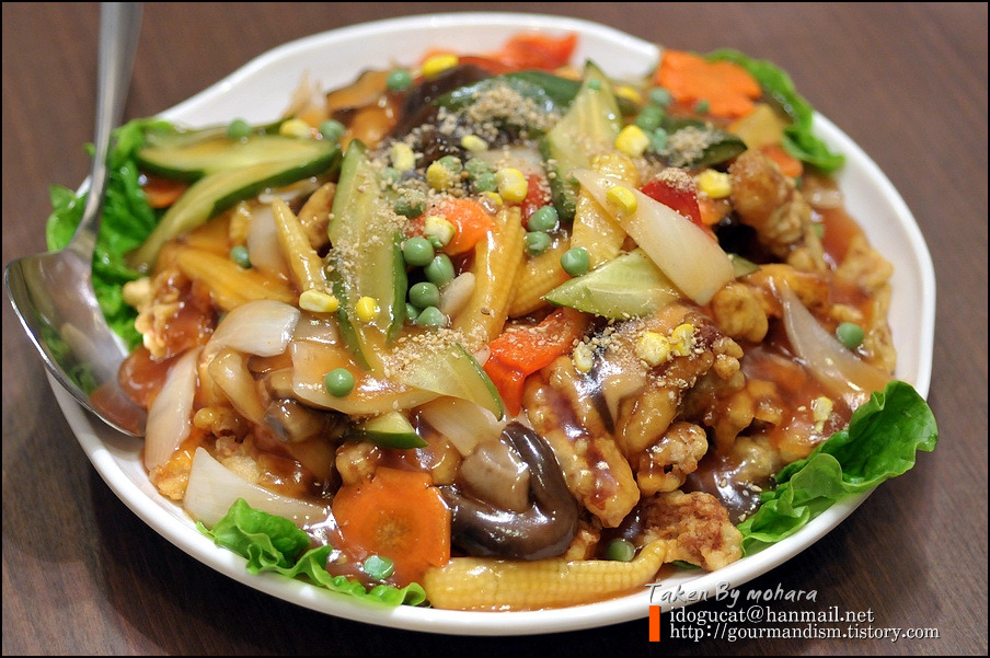 그래야 눅눅해지지 않고 튀김 맛도 즐기고 살아있는 양념 맛과 재료를 느낄 수 있다죠. 그럭저럭 괜찮은 맛이로군요.