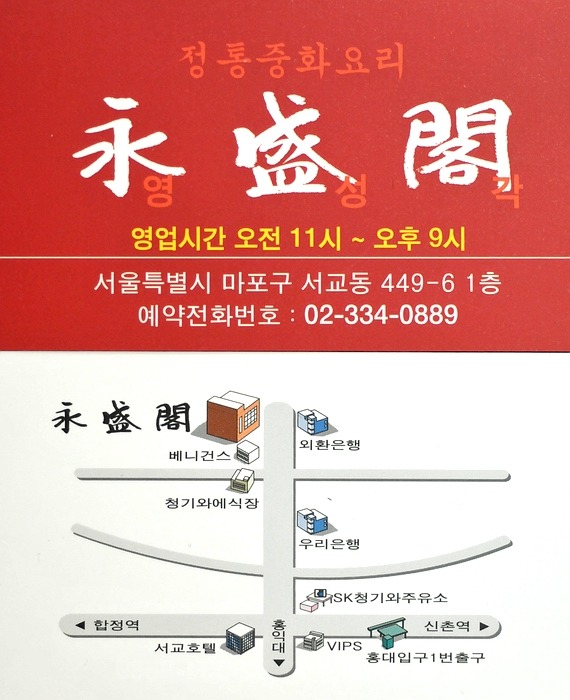 다음은 영성각 홍대점의 약도 및 전번입니다.