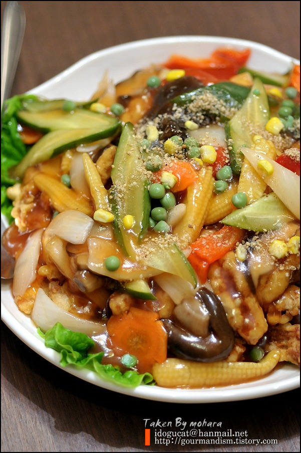영성각은 탕수육도 꽤 인기가 많은 편이었죠. 주문을 하면 이렇듯 소스가 얹어 나오는게 일반적인 집이죠.