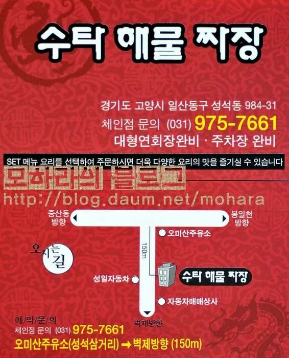 수년 전까지만 해도 짜장을 두고 짬뽕을 왜 선택하는지 이해를 못하던 모하라입니다만, 이젠 짜장 보다는 오히려 짬뽕을 선택하며 짜장만 주문 해 먹기에는 왠지 심심하다는 느낌이 들 정도입니다. 이것은 아무래도 짬뽕을 자주 접하며 그 진맛을 알게 된 것도 이유겠고, 먹다보니 짜장 보다는 좀 복잡미묘한 맛을 담고 있는 듯 싶어 그 맛 즐기기가 큰 즐거움이 된 것이지요. 짜장면에겐 미안한 마음도 들어 일산에서 수타로 만드는 독특한 짜장면이 있다고 들어 물어 물어 가봤습니다.
