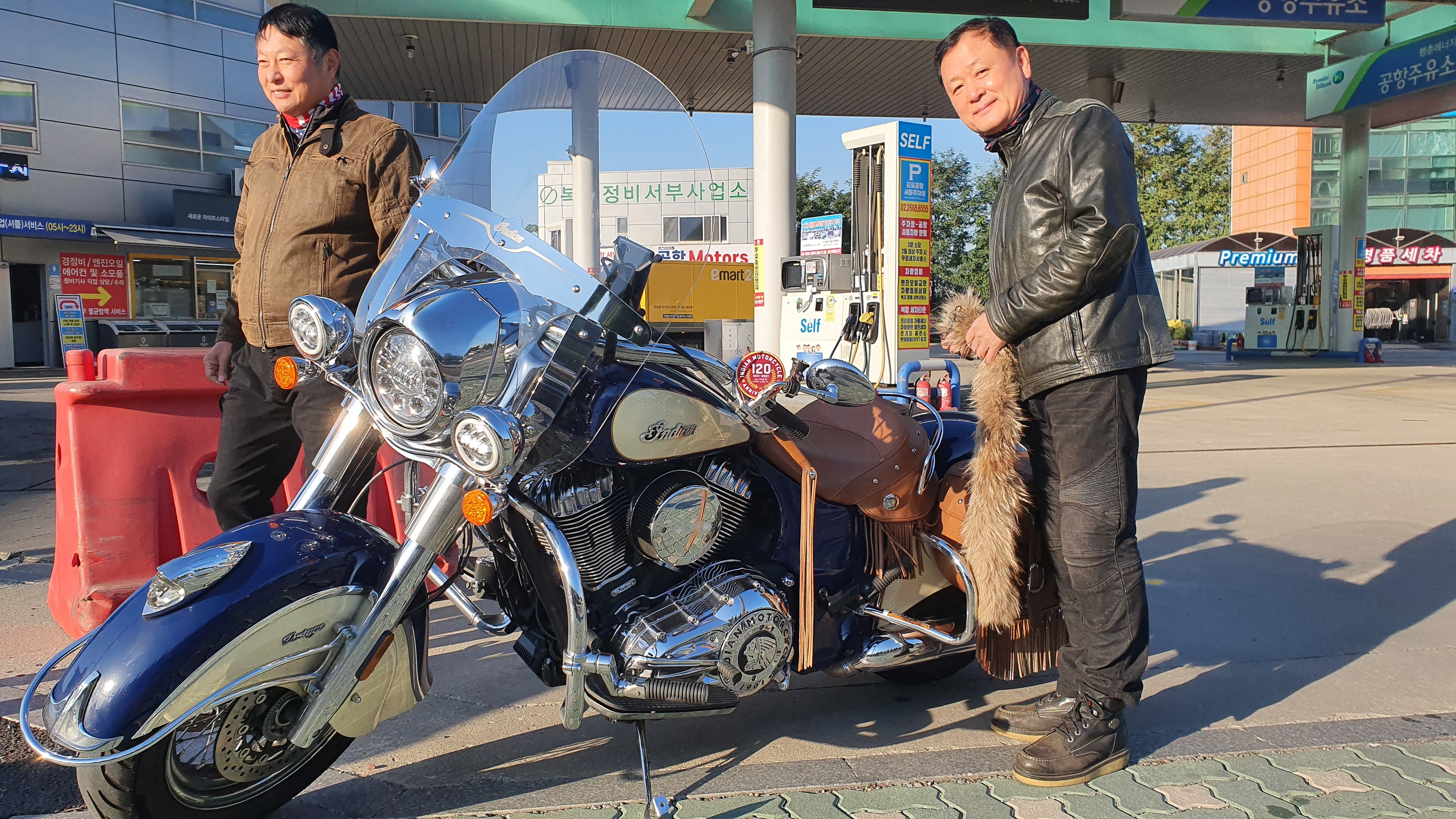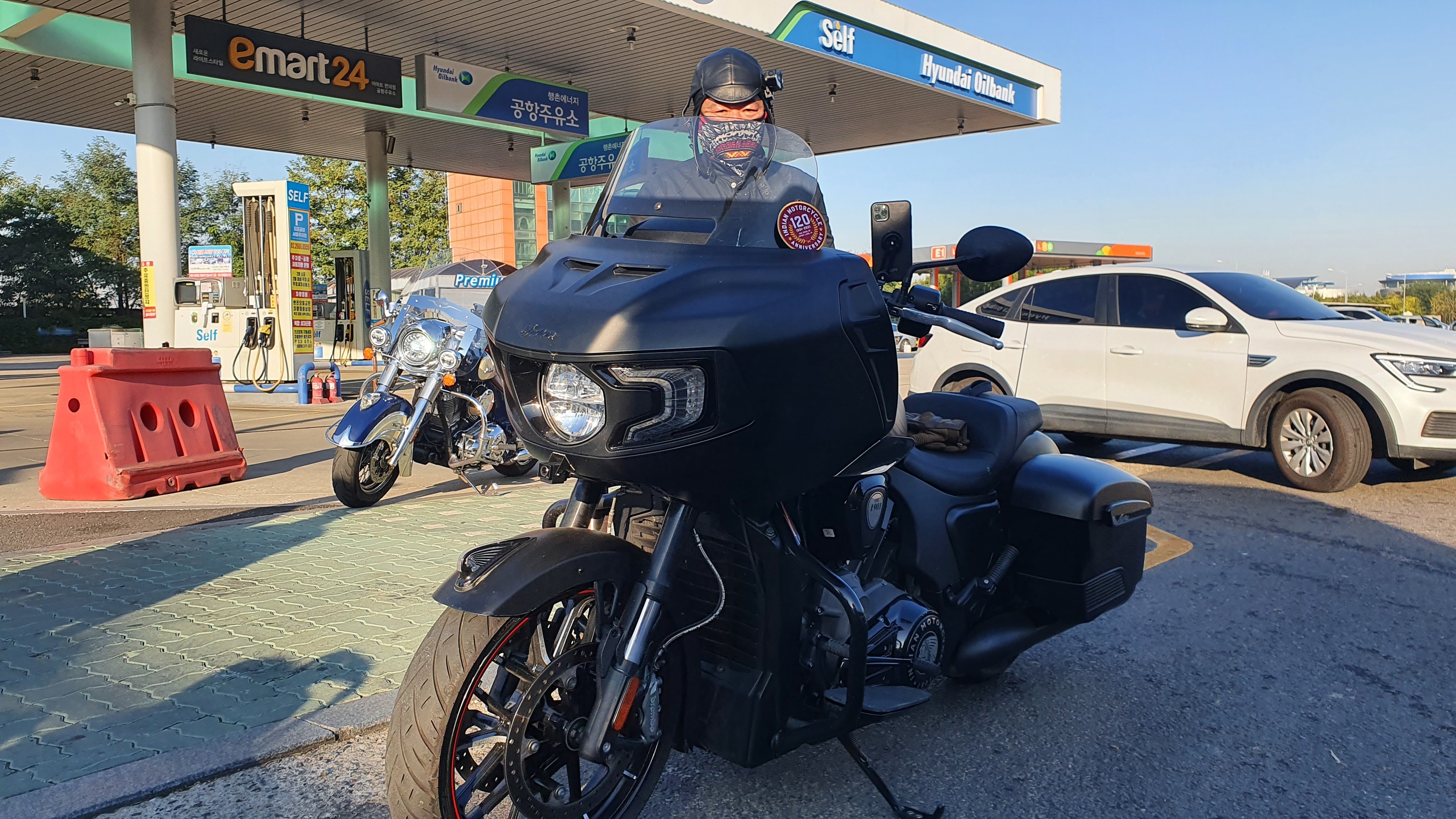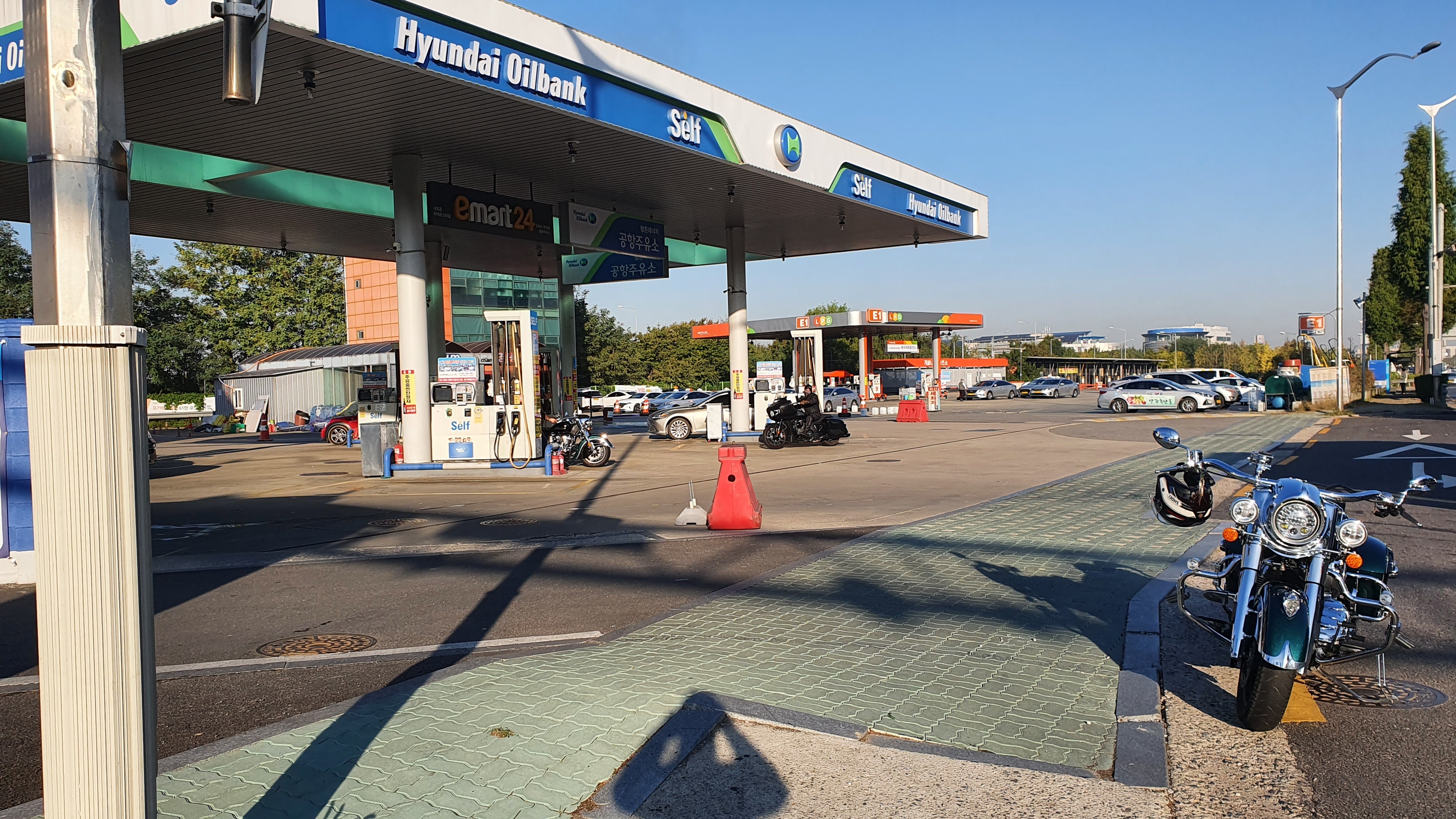일렬로 줄서서 가는 갓길 주행이라 톰과님 앞으로 빠르게 치고나가 비상상황을 알릴 수도 없고, 난감합니다. 그저, 비상등을 키고 크락션을 열심히 눌러봅니다. 그러는 동안 공기압은 벌써 180KPA까지 내려갔습니다. 마음이 점점 초조해지는 순간, 톰과님이 주유소옆 편의점으로 기수를 꺽습니다. 다행, 다행.......