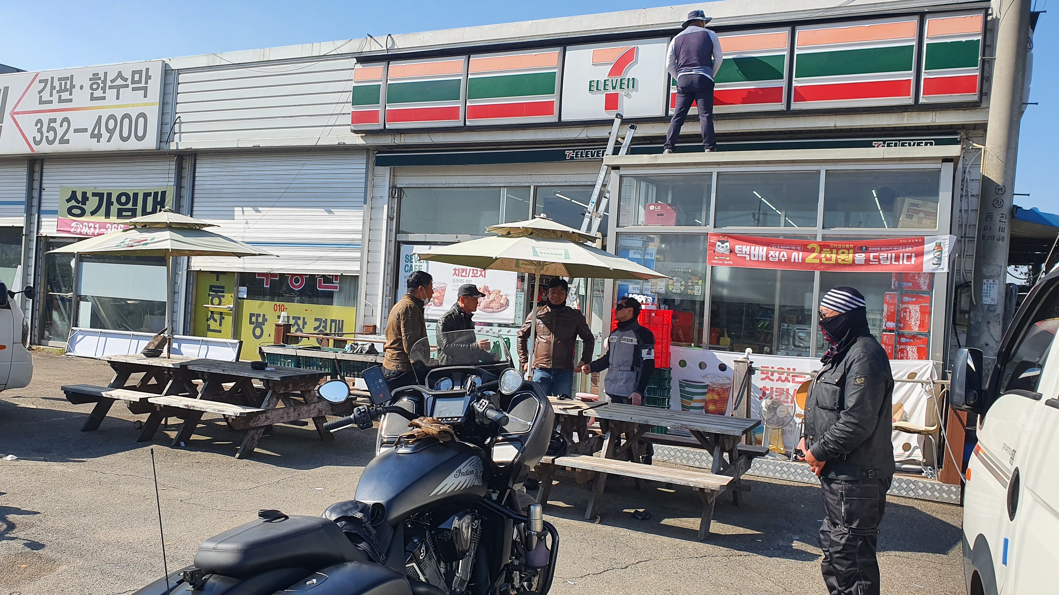 엎어진 김에 쉬어간다고, 펑크를 다 떼운후 시험도 해볼겸, 조금 더 이동하여 다음 편의점에서 휴식을 취합니다. 다행히 여기까지는 공기압이 잘 유지됩니다.