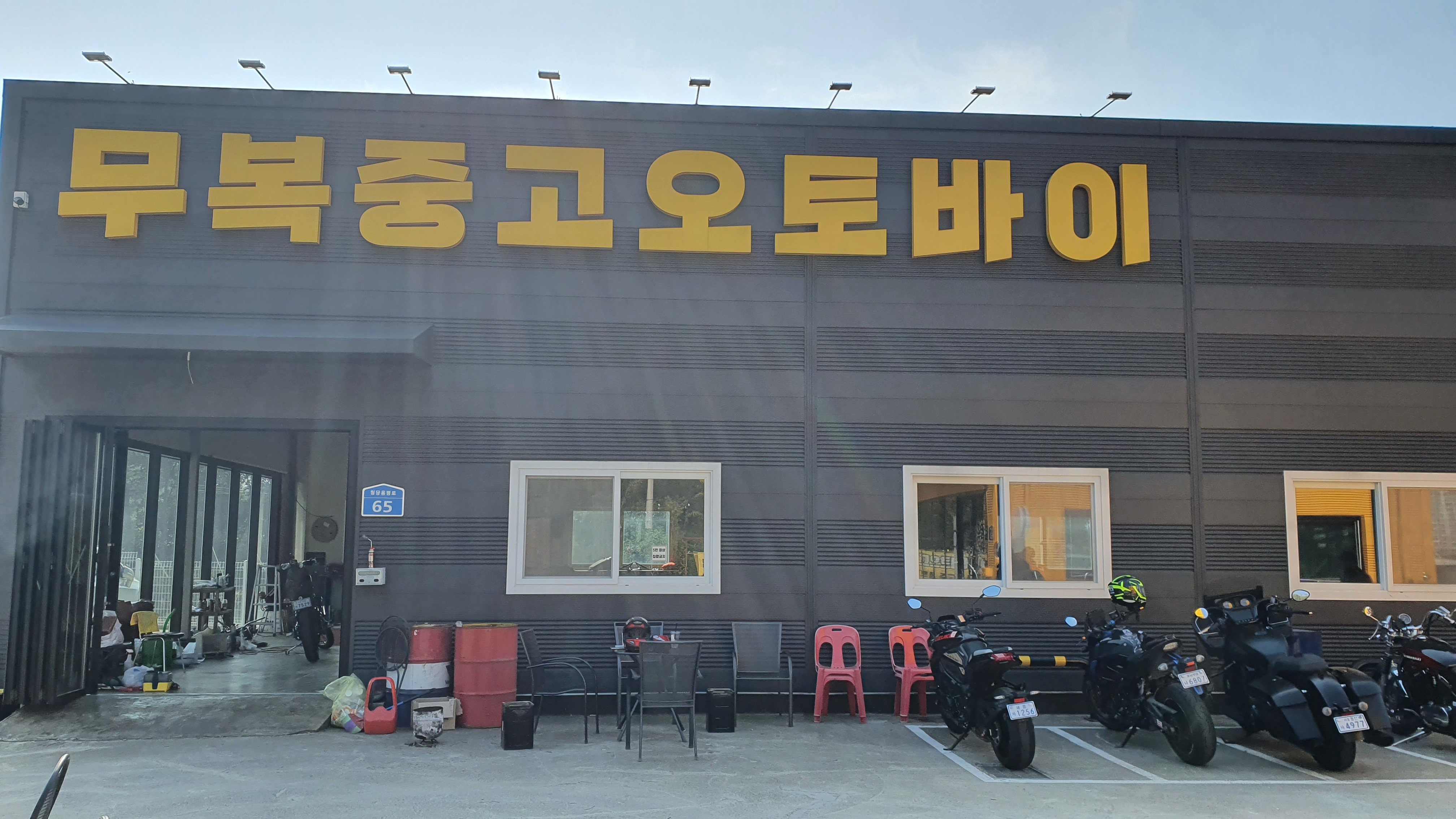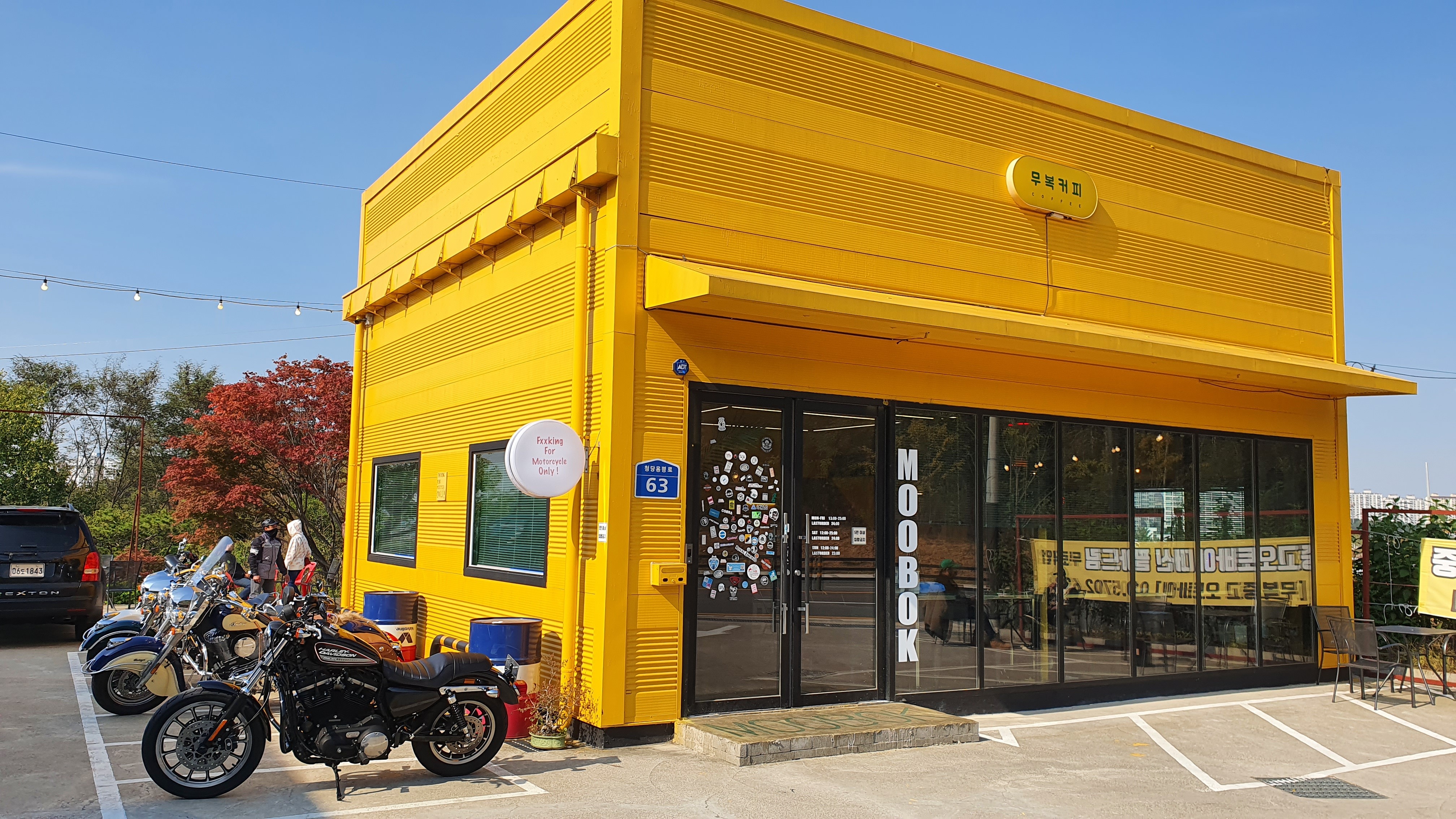 한쪽은 카페, 한쪽은 중고바이크를 팝니다.