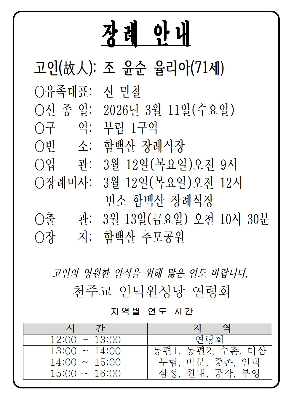 조윤순 율리아(71세) 작성자아빌라데레사|작성시간26.03.11|조회수100 목록 댓글 0 글자크기 작게가 글자크기 크게가 통합 글양식 다음검색 현재 게시글 추가 기능 열기 북마크 공유하기 신고 센터로 신고 댓글 댓글 0 댓글쓰기 답글쓰기 댓글 리스트