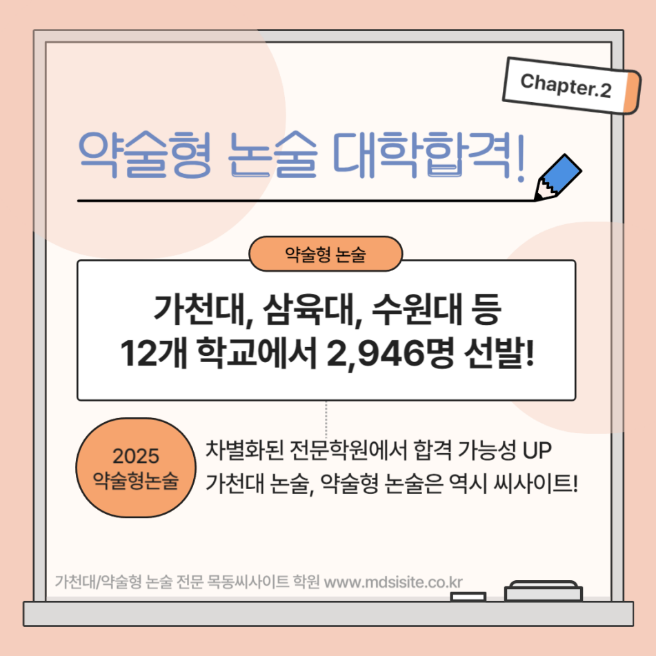 2025학년도 가천대 논술 등 약술형 논술고사의 수능 최저 기준, 시험과목, 시험범위 등에 대해 더 궁금한 점이 있거나, 차별화된 약술형 논술 전문학원 목동씨사이트에서 1:1 무료 상담을 받고 싶은 분들은 부담없이 전화주세요 ^^